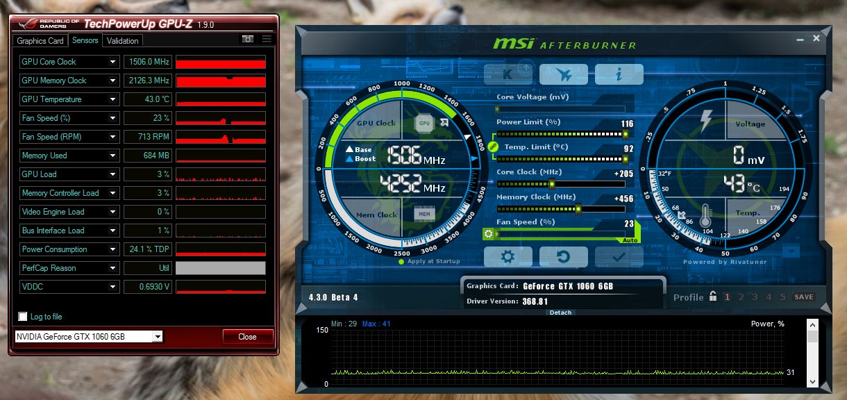 Daher lasse ich Sie für den Alltag auf 1800/4400, mit normalem 100% Powertarget. Der Boost startet bei 2100 und pendelt sich je nach Game zwischen 2062 und 2088 Mhz ein. Ich denke alles über 2100 Mhz lohnt sich nicht wenn dies nur 2-3% gibt. Von Base / Founders auf 1800 /4400 gibt immerhin ca. 10% Performance, was die 1070 näher an die GTX 1080 Founders rückt, die sich ja doch einige für über 650 gekauft haben.