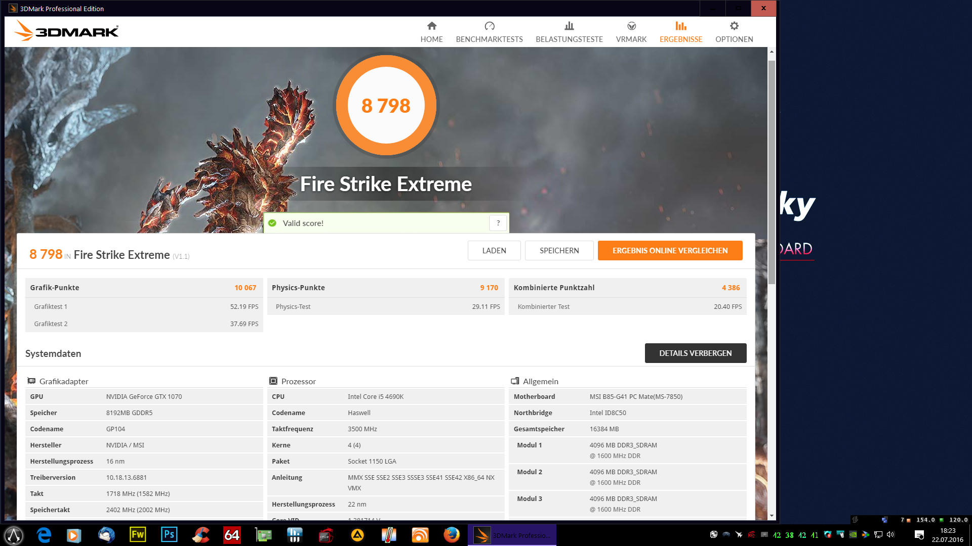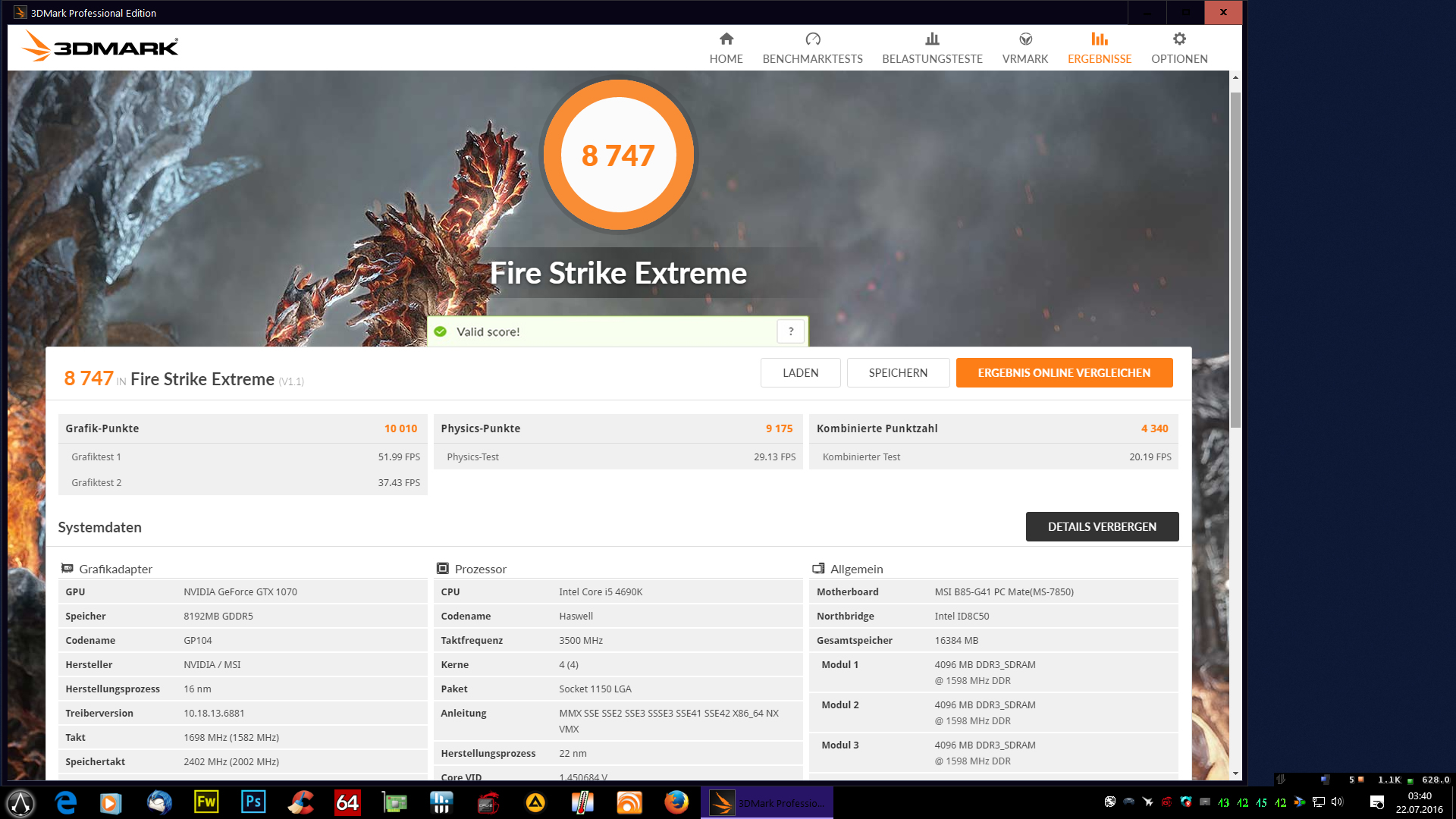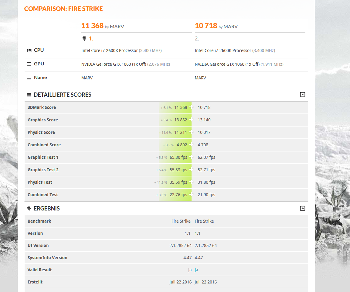 Ebenfalls die 10000 Points Grafikscore im Firestrike Extreme geknackt