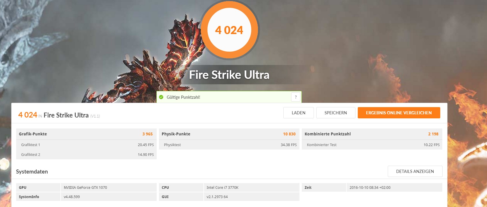 den richtigen Fire Strike heute mittag/nachmittag