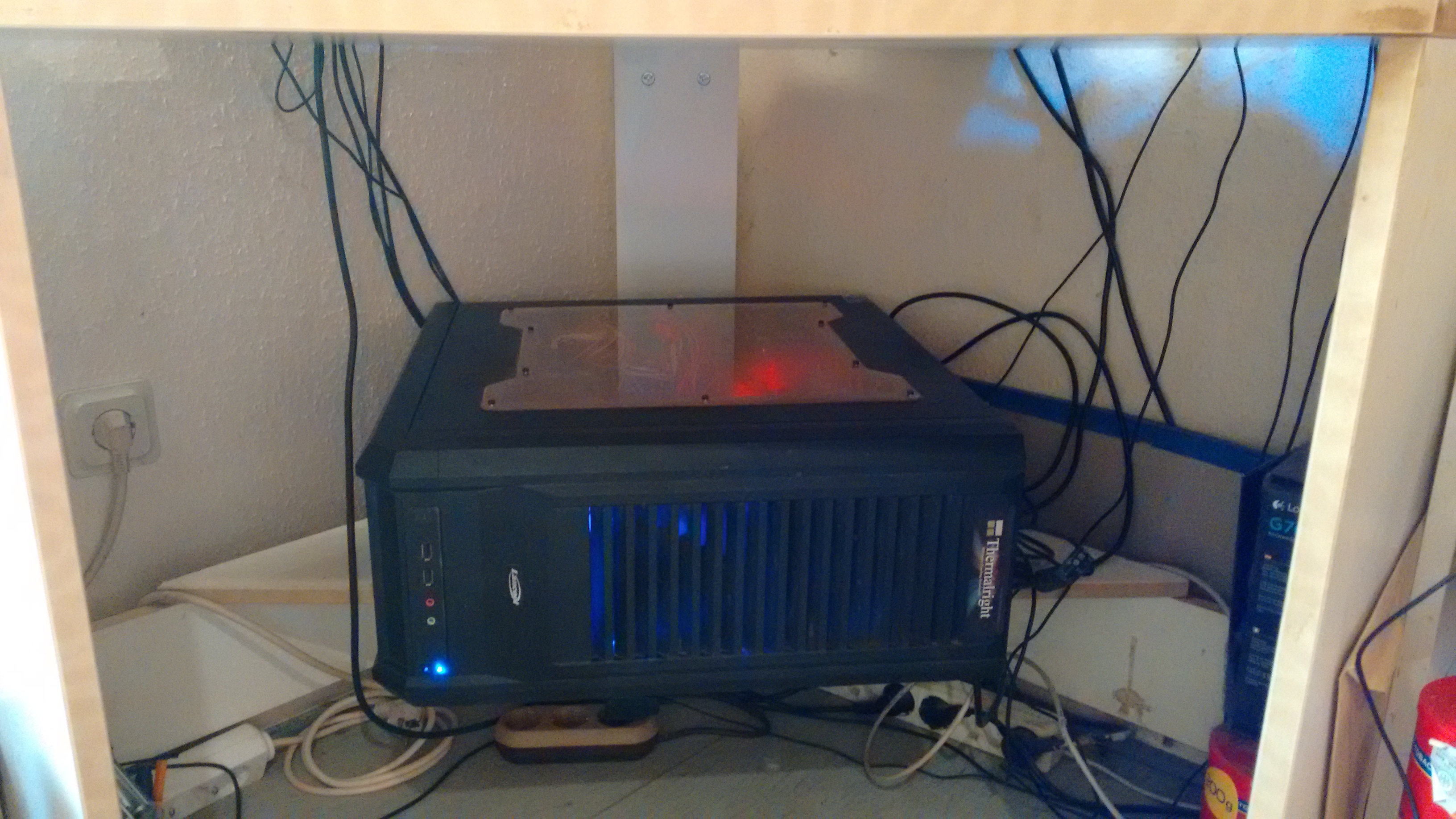 Wenn ich den Rechner als mal da unten raushole ändern sich die Temps ganz schön. Dazu sei aber gesagt, das er da unten Liegend sein dasein fristet. Allein das dürfte schon das meiste an Temps kosten, da dann ja Airflow sozusagen nicht mehr vorhanden. Geht nur eben nicht anders, da er stehend da nicht hin passt.