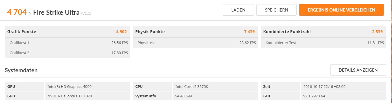 Das Profil müsste anders sein, bei der Armor werden 67° angesteuert, bei der Gaming 70?