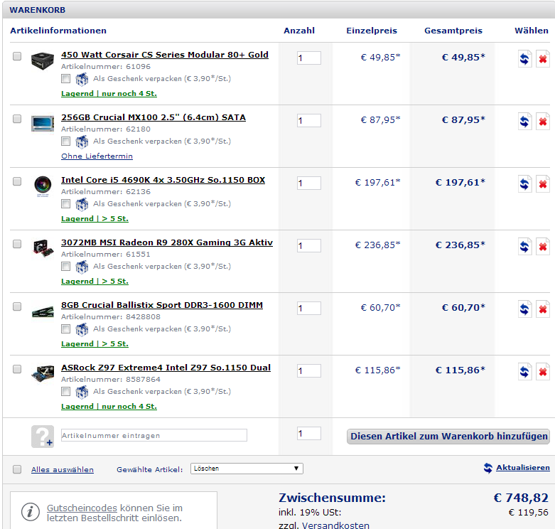 Die Teile die rot sind, kommen da neu rein in mein Gehäuse, vom Rest also Festplatte und Laufwerk habe ich keine Werte gefunden, da es ein fertig Rechner war :c