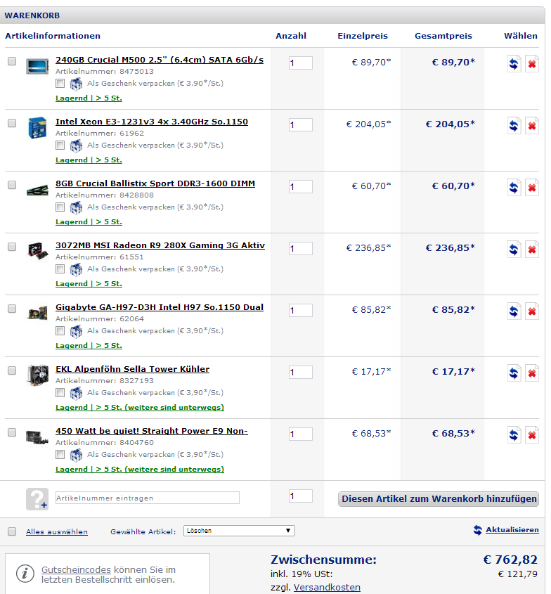Hast du jetzt auch das H97 Board und den kleineren Kühler in den Korb gepackt?