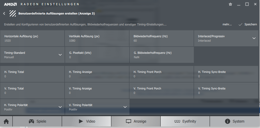 Eine andere Möglichkeit. die entsprechende Full HD Auflösung bei 60Hz einzustellen, konnte ich in den Radeon-Einstellungen nirgends finden.