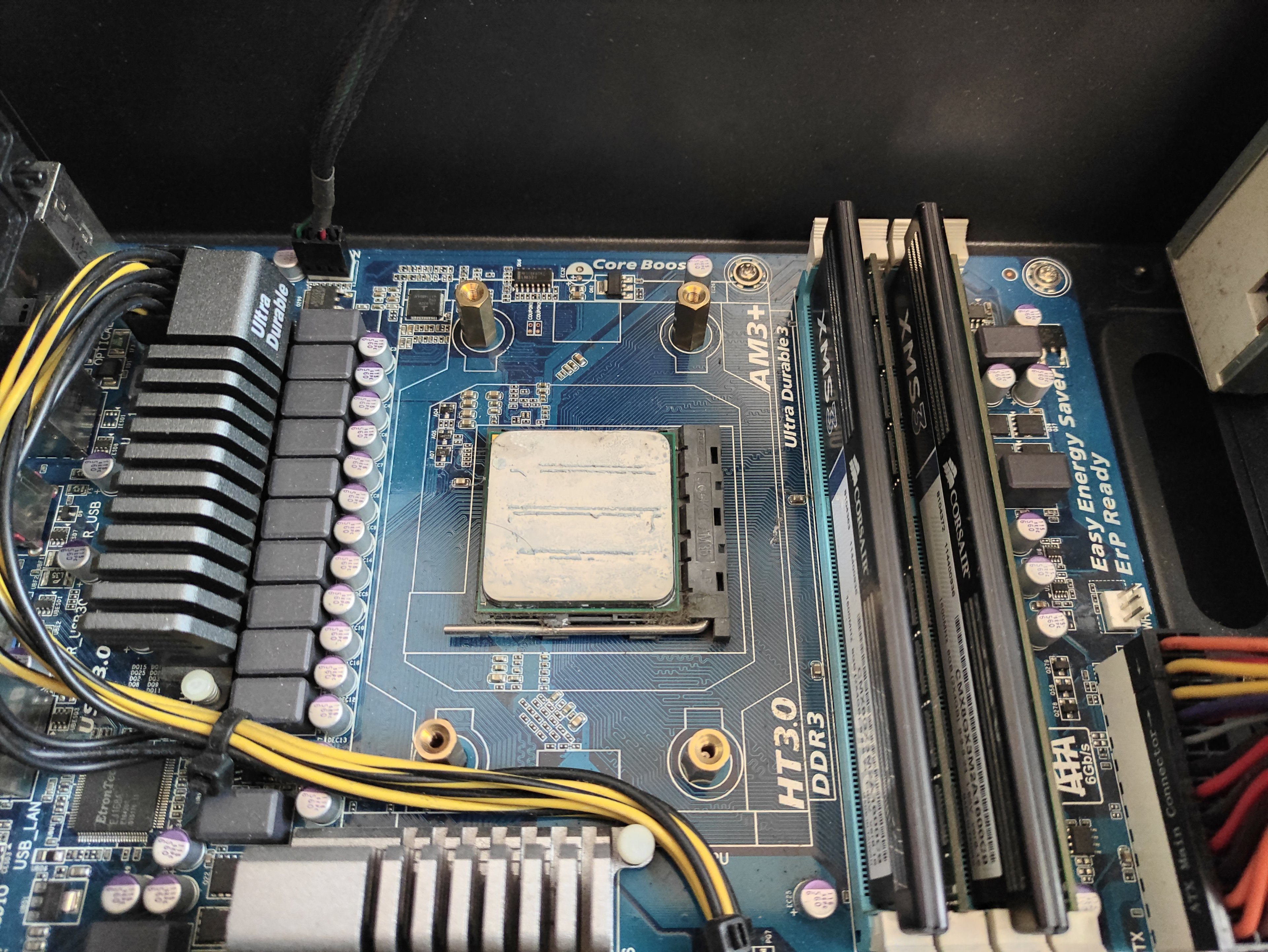 ich suche einen passenden CPU-Kühler für mein altes Board von Gigabyte - GA-970A-UD3 - (Bild, s.u.), ich habe mir den Pure Rock 2 von be quiet gekauft, nur passen die Gewindebolzen nicht in die Gewinde des Sockelrahmens, die Gewindebolzen sind einfach zu dick.