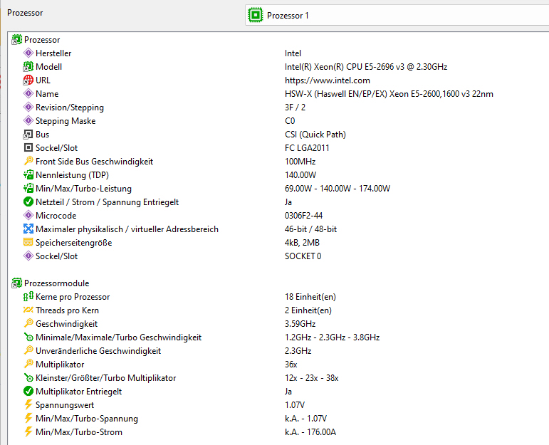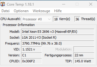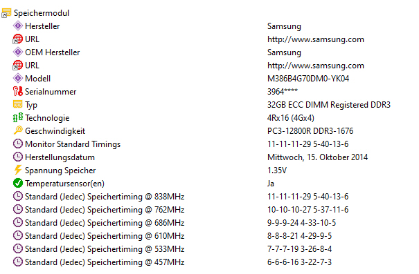 Aktuell habe ich 4x32 GB RAM Samsung 12800 L PC3L (siehe Foto). Die aktuelle CPU ist ein Xeon E5 2696 V3 Sockel LGA2011.