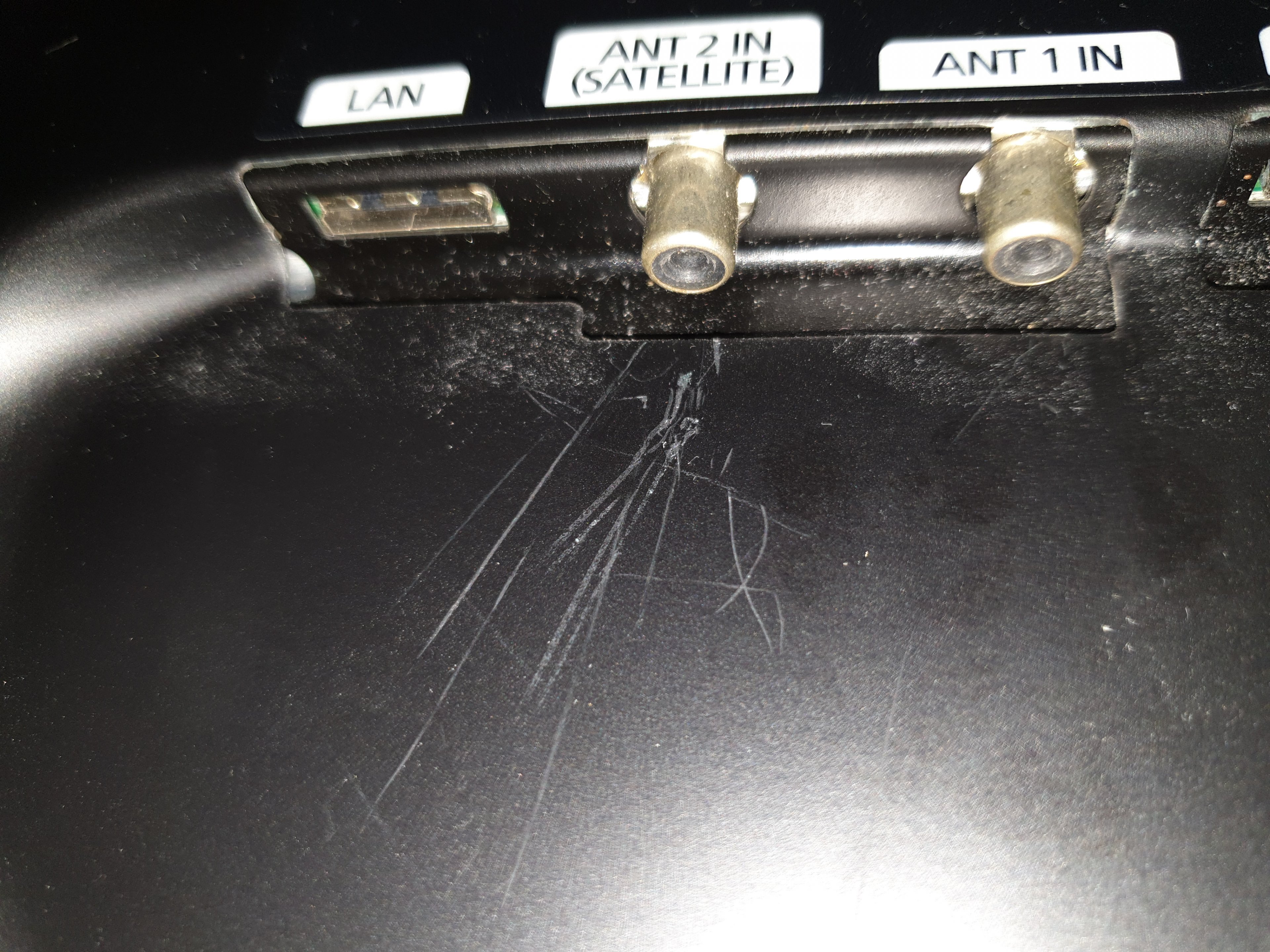Der rechte Antennenanschluss am Fernseher hat einen Außendurchmesser von ungefähr 6 mm.