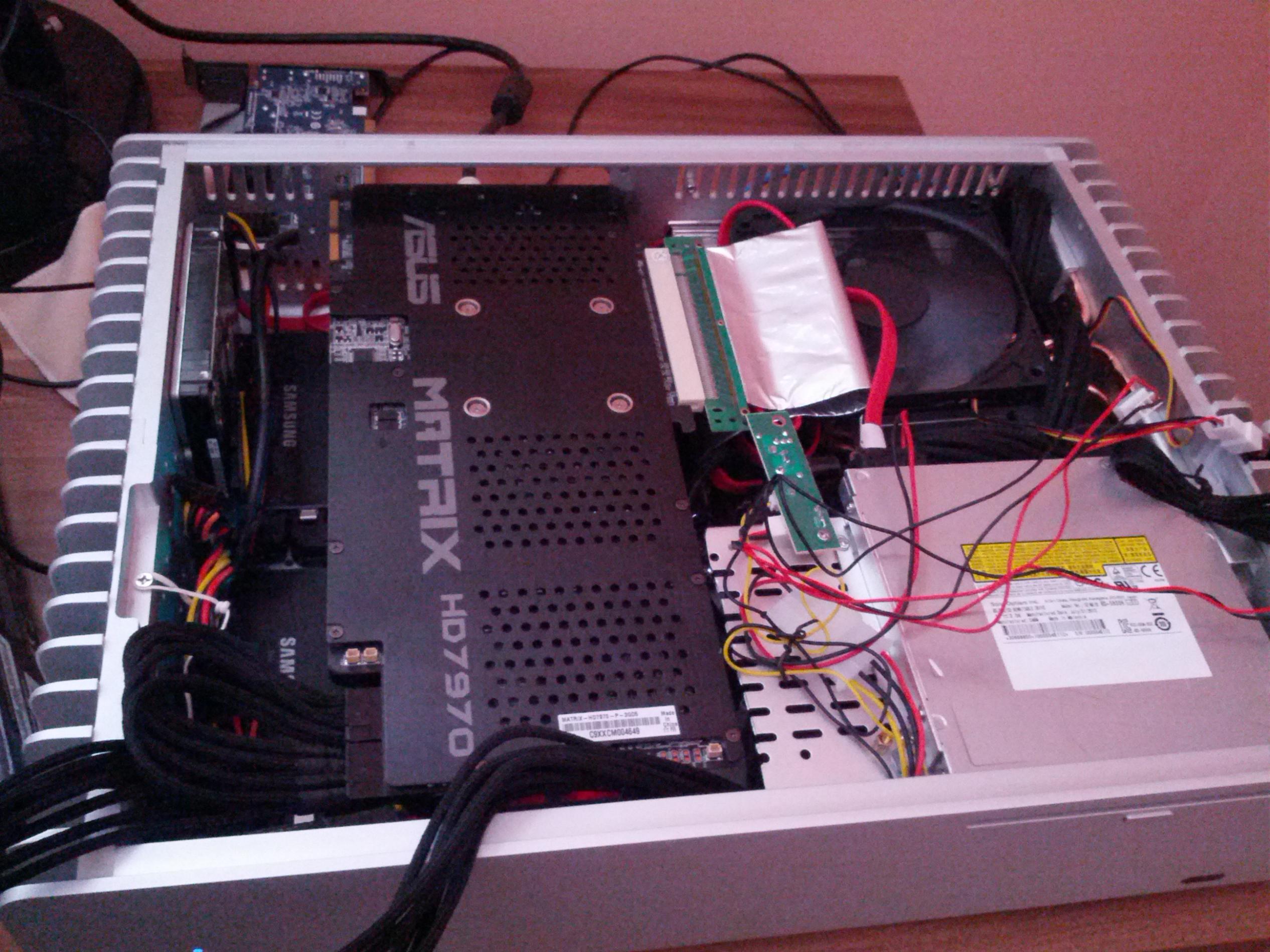 @JiJiB: Wie sieht denn eigentlich deine Konfiguration mit dem FC10 aus? Und wie lüftest Du den PC? Ist die Hauptquelle für Geräusche das erwähnte Netzteil? Und wie hast du die 7970 ins Gehäuse eingebaut? Das dürfte doch nur mit ner Risercard funktionieren, oder? Ich dachte eher an so was, wobei ich nicht sicher bin, ob die zu hoch ist... http://geizhals.de/his-radeon-hd-7750-isilence-5-h775p1gd-a797652.html