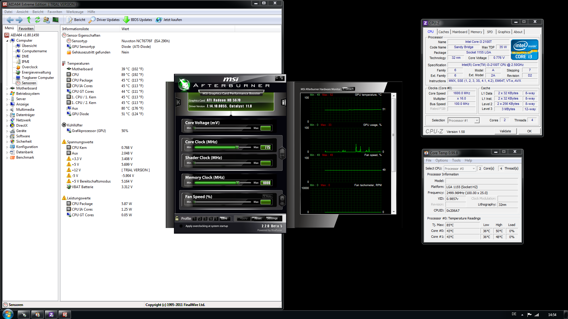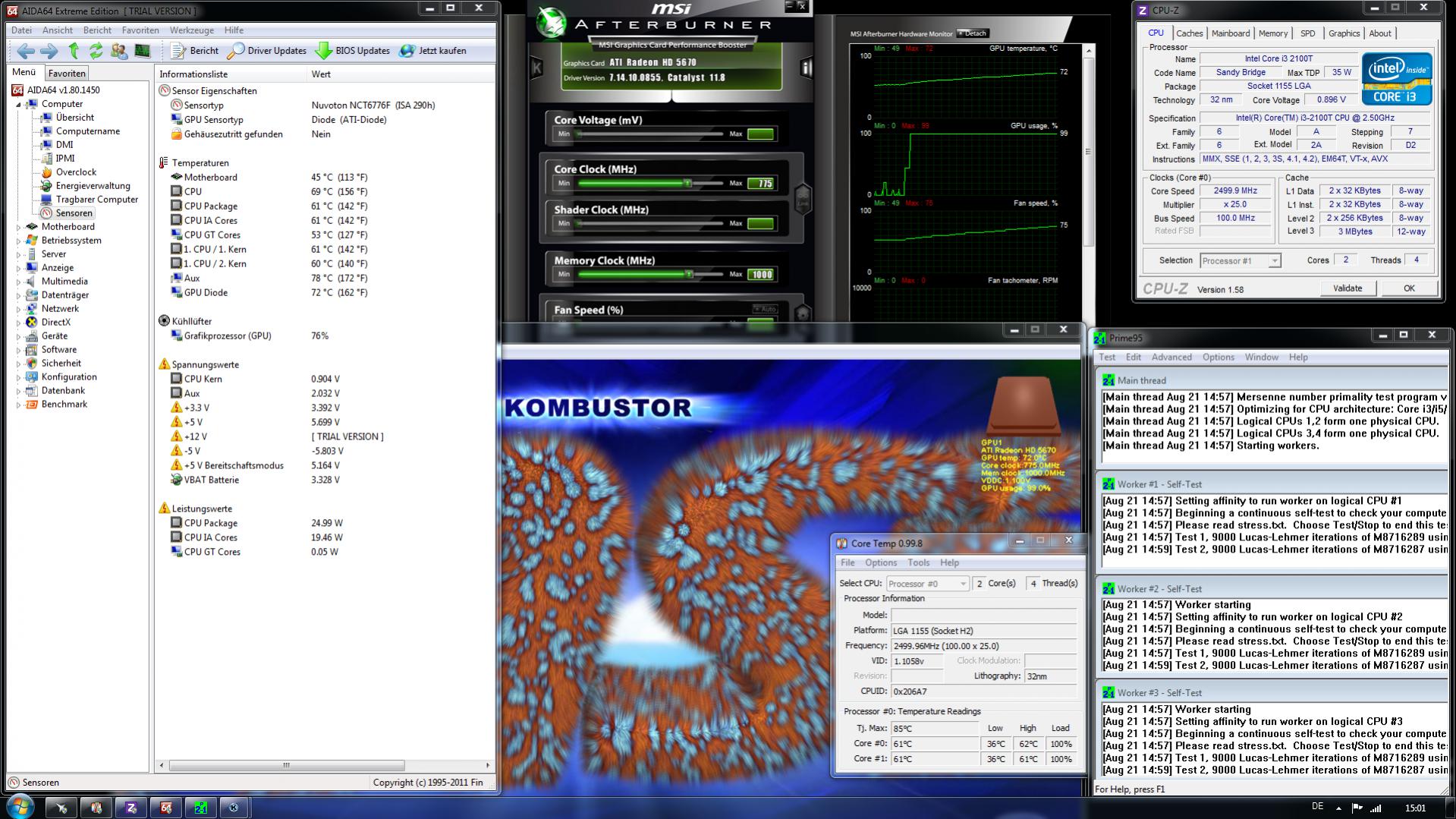 Ich teste diese extremen Auslastungen nur spaßeshalber und weil mein Netzteil derzeit völlig ausreichend dimensioniert ist. Die ca. 75w Verbrauch beim Spielen von Duke Nukem Forever waren schon ein erster Vorgeschmack davon, wo die Belastung und die Abwärme wohl typisch einzustufen sein wird.