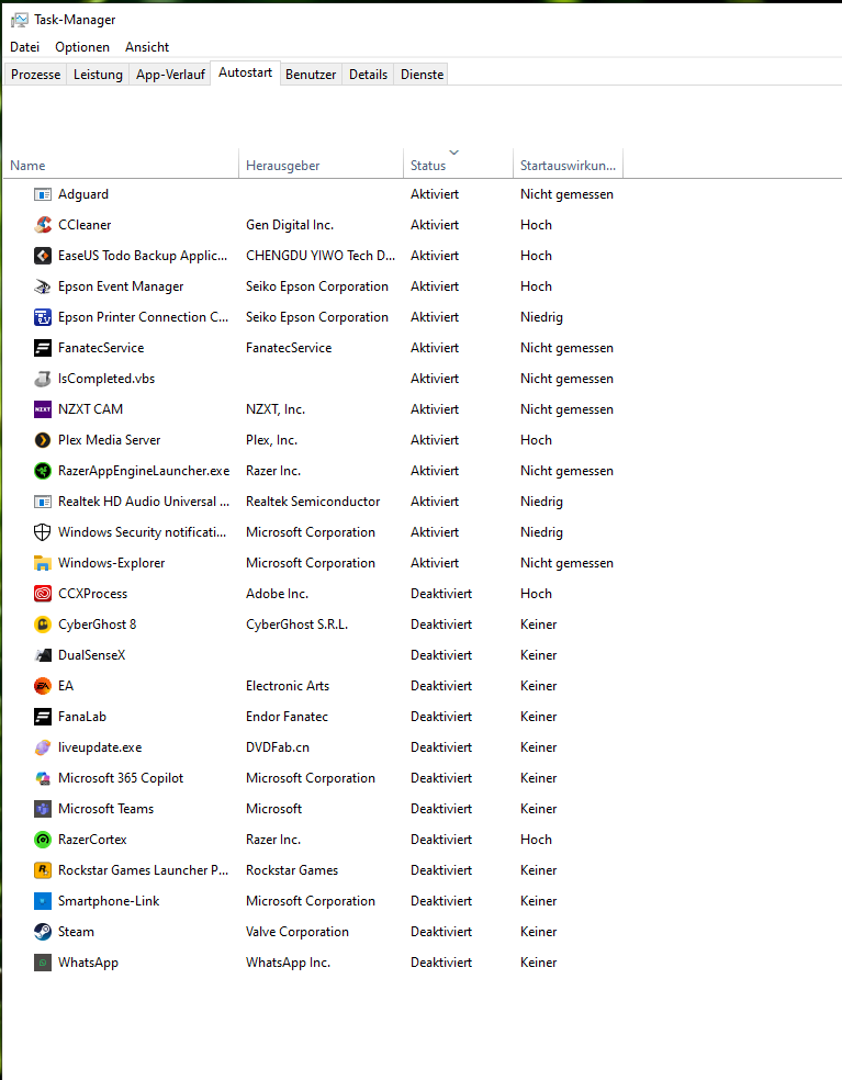 NZXT Cam Möchte ich in Autostart behalten, da ich so die Temps im Auge hab