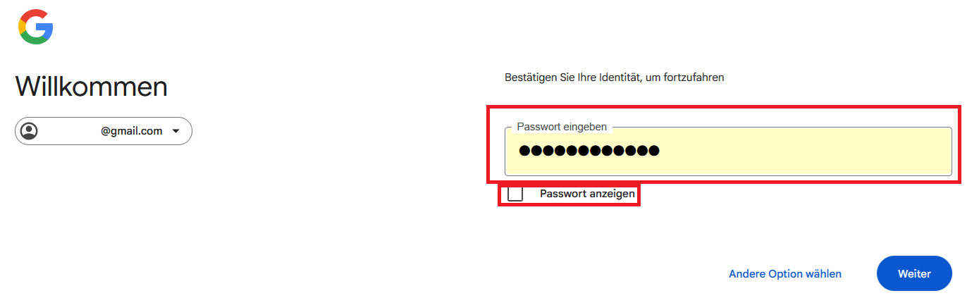 Leider kennen wir das Passwort nicht mehr. Unser Sohn hat einen Laptop bekommen und nun wollen wir dort in Outlook seinen Gmail-Account hinzufügen. Und dazu brauchen wir das Passwort.
