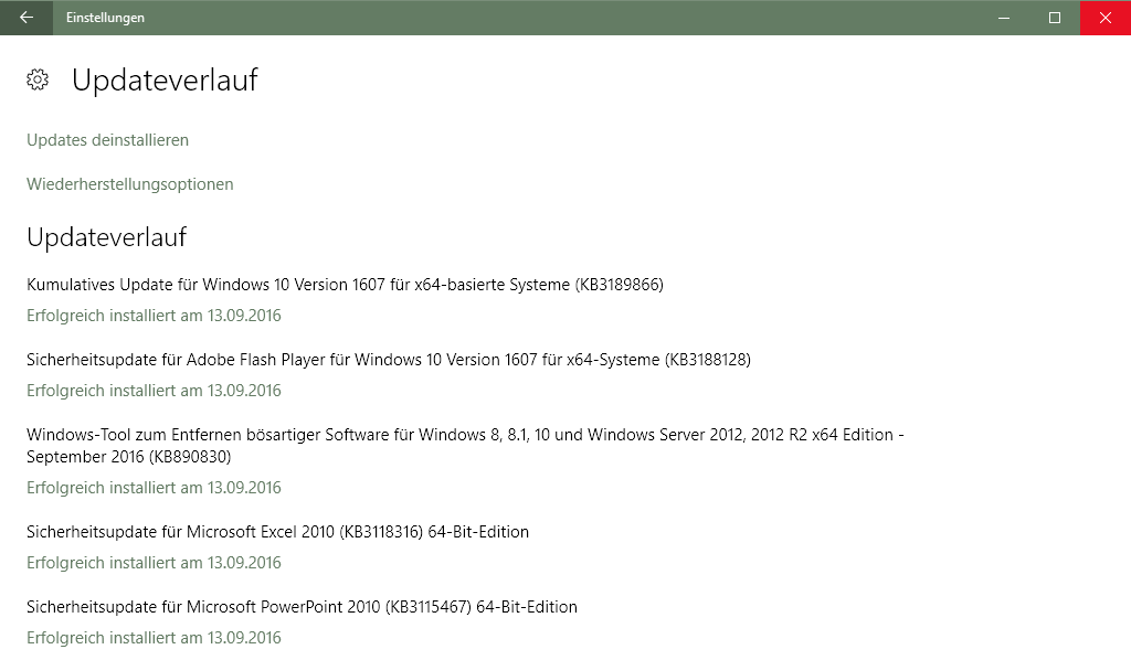 Der Updateverlauf zeigt auf, dass es keine Probleme mit dem Windows Update KB3189866 gegeben hat. Der Download, die Installation und der PC-Neustart waren erfolgreich. Nach dem PC-Neustart werden die Windows Updates erst einmal verarbeitet und dafür muss leider etwas Geduld aufgebracht werden (siehe Bild "Updateverlauf").