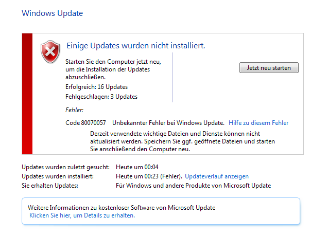 Fehlgeschlagene Updates? Hatte ich noch nie. Dann allerdings der Text dazu Unbekannter Fehler: Tja, so genau wollte man es doch gar nicht wissen