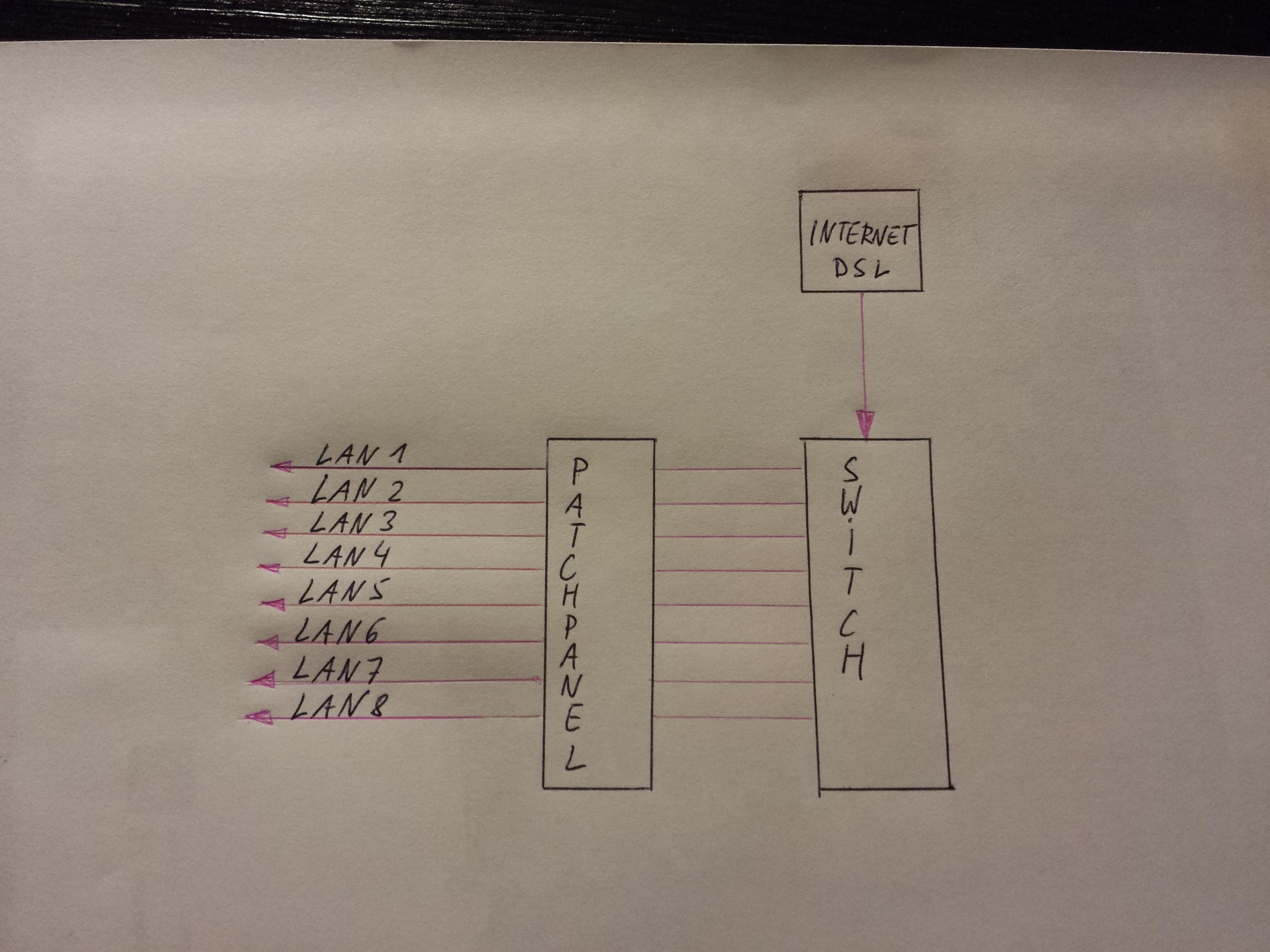 Hab keine Doppeldose hinter Wohnwand. Ich verstehe aber immer noch nicht, warum das inet Signal erst durch den Router muss und nicht direkt auf den Switch... Am besten einer würde mir da eine Skizze zeichen...