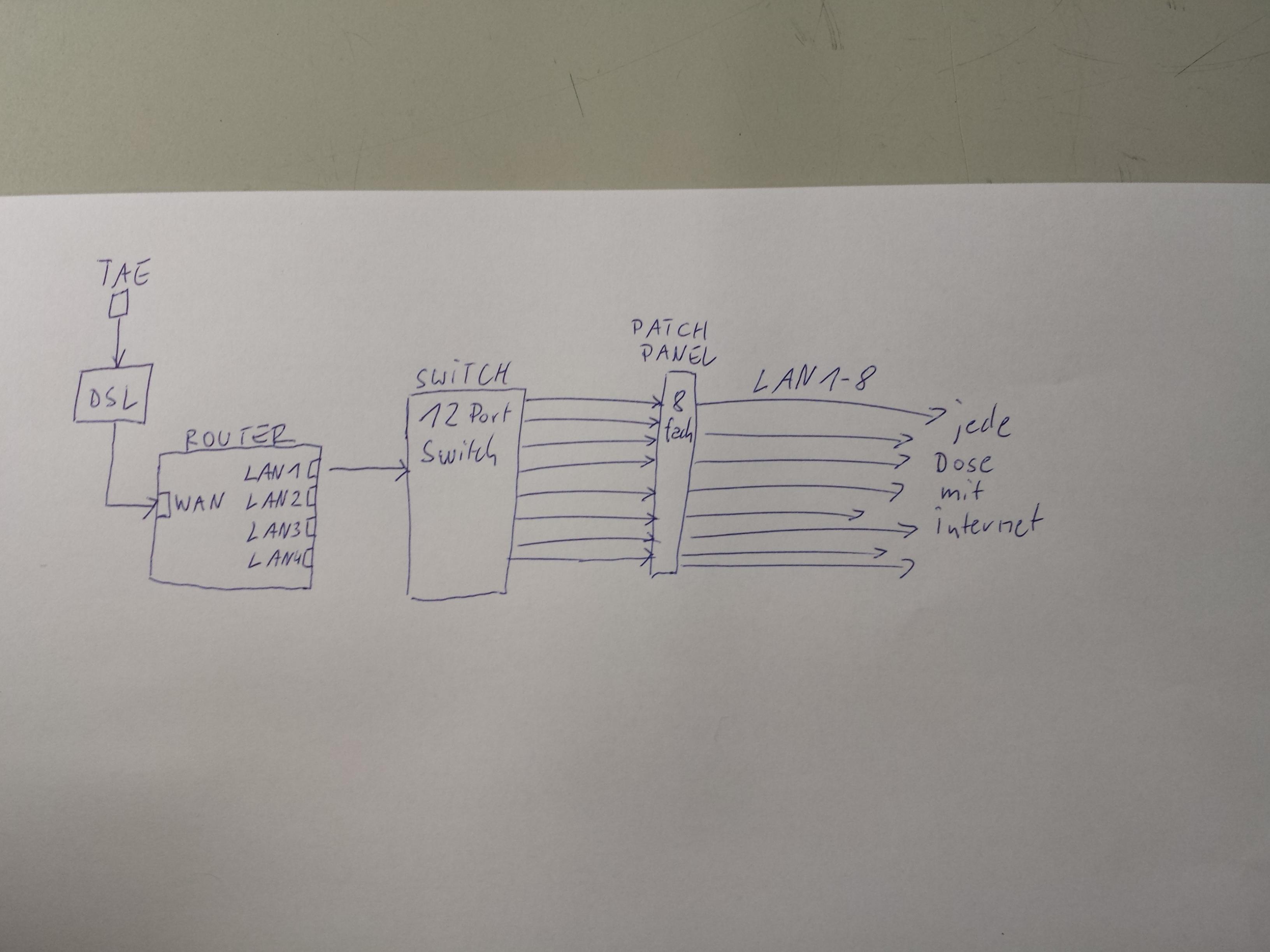 Das heißt jetzt hier laut der Skizze, daß jede LAN Dose 1-8(ganz rechts im Bild) unabhängig mit Internet versorgt wird: andersrum, alle können gleichzeitig ins Internet? So wollt ich das haben nämlich.