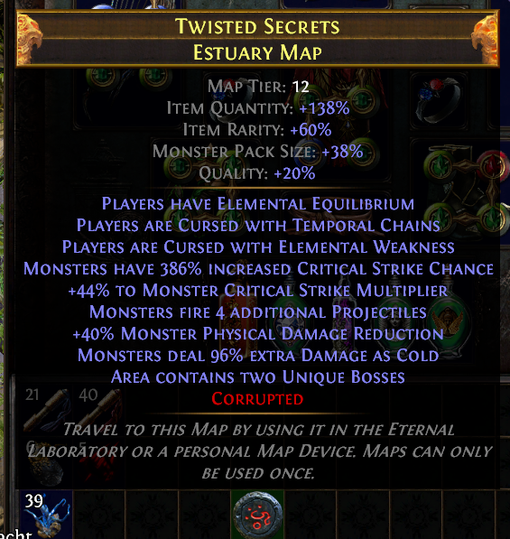In Bau: Essence Drain Sorc mit genug ES, Curse Effect Temp Chains und Wither Totem um Izaro locker auf die Hälfte zu verlangsamen plus Basalt plus praktisch voller Enfeeble Effekt durch sehr viel increased curse Effekt.