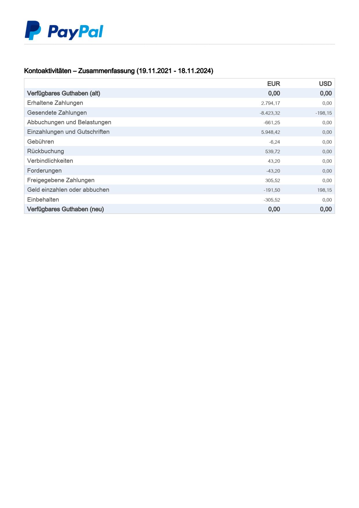 Hierüber lassen sich größere Beträge auf dein PayPal-Konto laden oder von dort auf dein Bankkonto auszahlen. Diese Transaktionen sind in deinem Auszug gesondert aufgeführt.