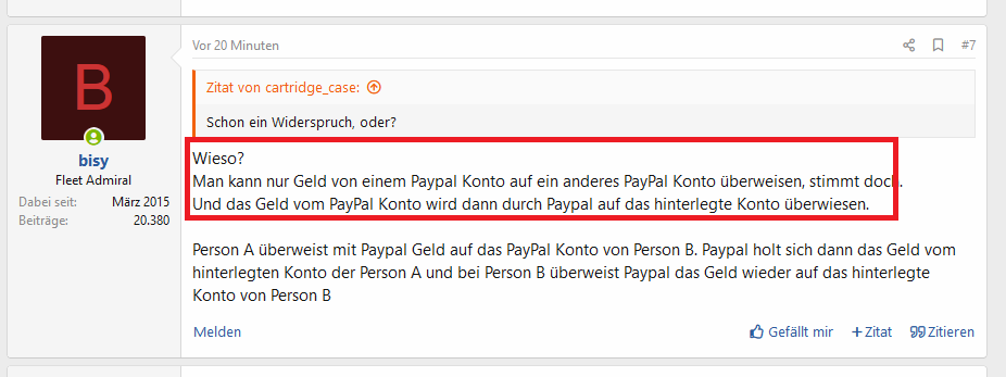 Ich habe geschrieben, das man nur von Paypal zu Paypal überweisen kann