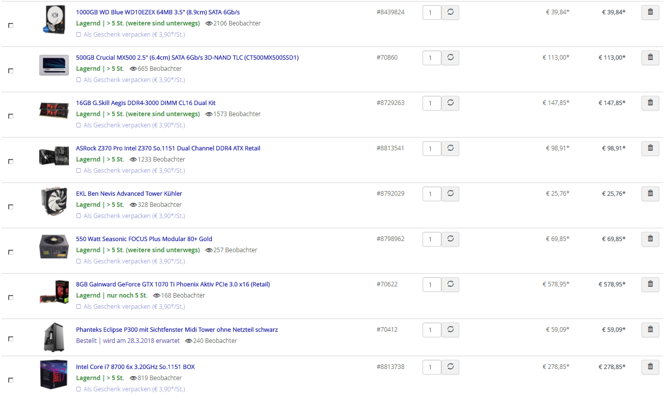 Das Netzteil ist super, das kann aufjedenfall drin bleiben. Sonst würde ich auch den 8700k empfehlen. Die 1070ti hat meiner Meinung nach zurzeit das beste P/L-Verhältnis. Die 10% mehr Leistung der 1080 kann man sich sparen bei 100-150€ mehr.