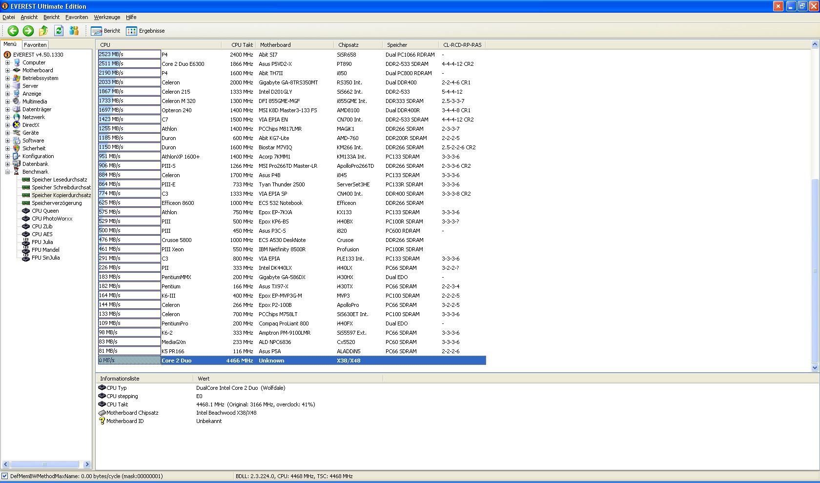 Hi ich habe folgendes Problem habe die Rams mit everest getestet habe nur 7 gb beim benchen und beim Speicher Kopierdurchsatz 0 ?
