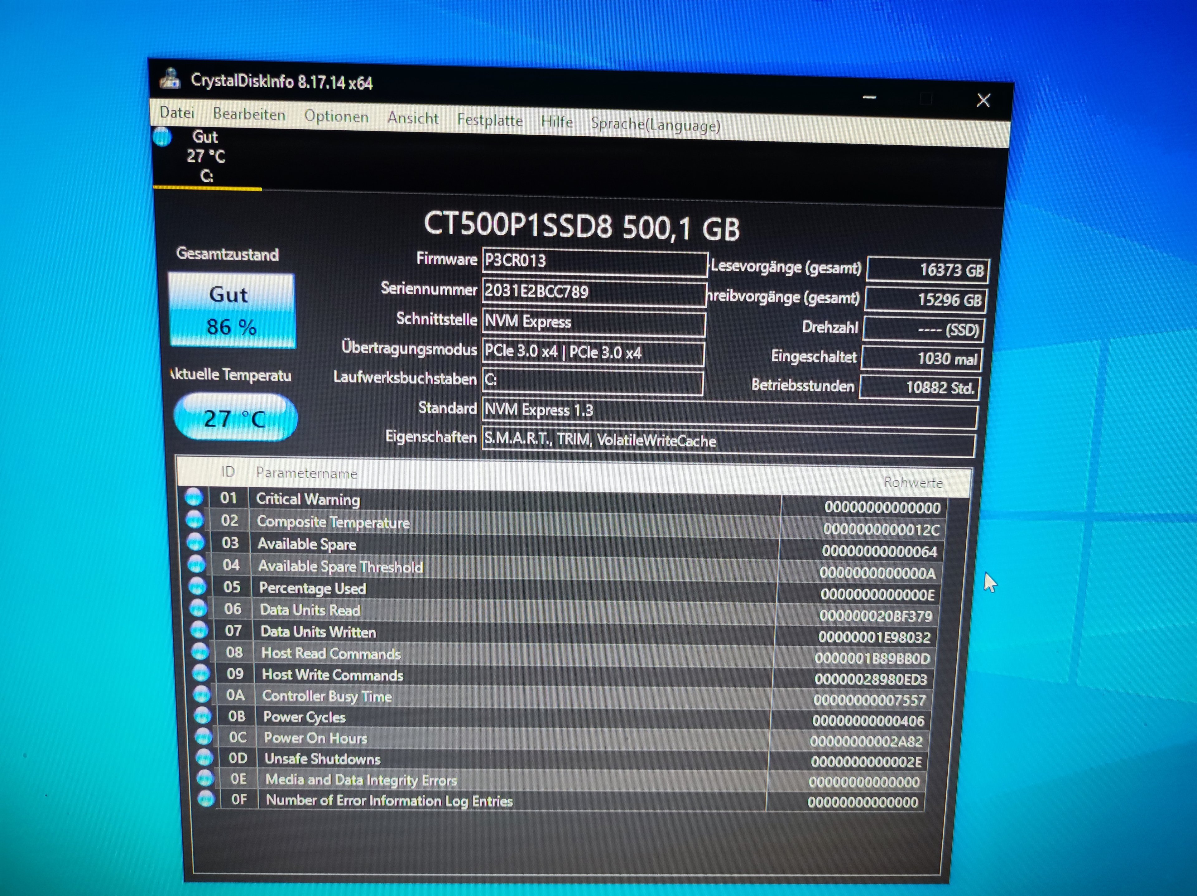 Evtl Mal ein Screenshot von Crystal Disk machen.