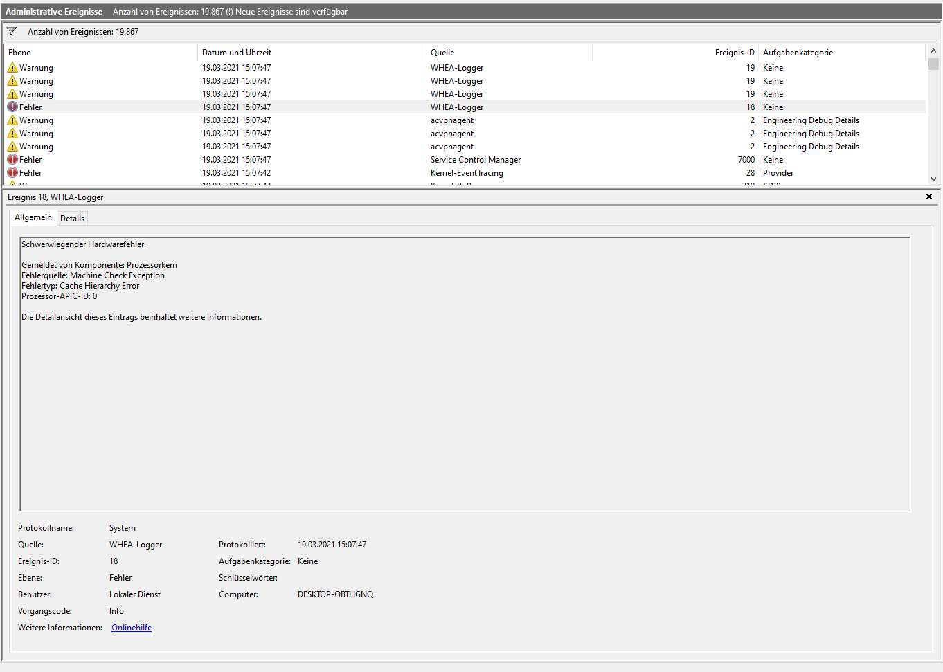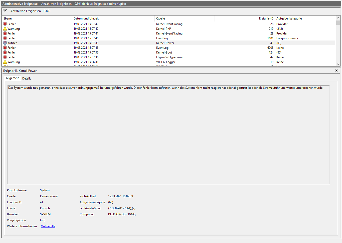 Leider nicht detailliert genug. Bitte mal wirklich zum Zeitpunkt des Absturzes in die Ereignisse gehen und dann hier zeigen.Ardi98 schrieb:denn ich habe nicht nur die Ereignisanzeige