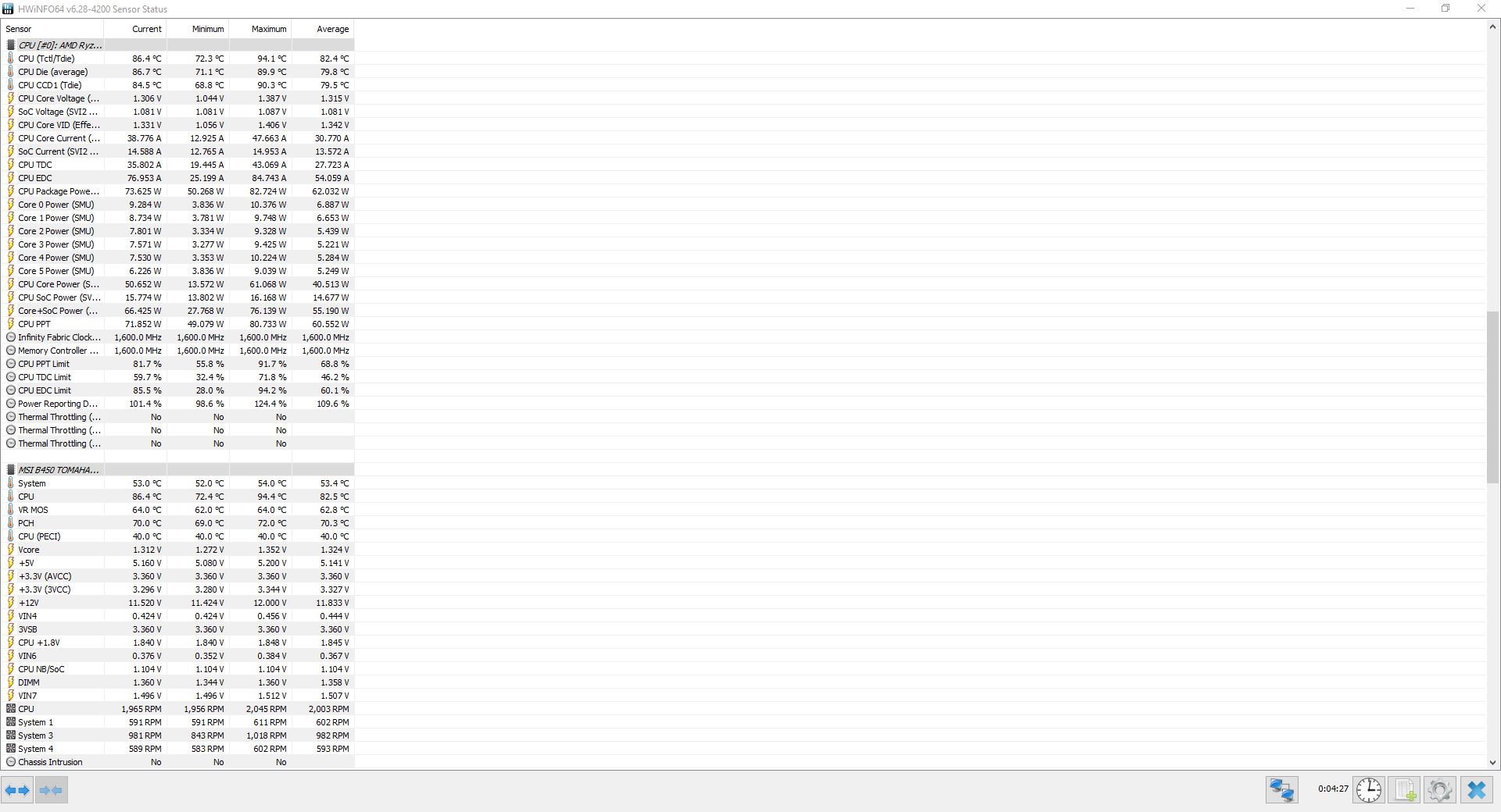 Und lass mal die Log mitlaufen und oder die Refreshrate der Sensoren unter Settings (drei balken oben rechts )mal auf 0,1 Sek. setzen denn die muss nur für ein paar sek. vermutlich ms. über 100° liegen und die Karte schaltet ab und mit 98 biste nicht gerade weit weg davon.