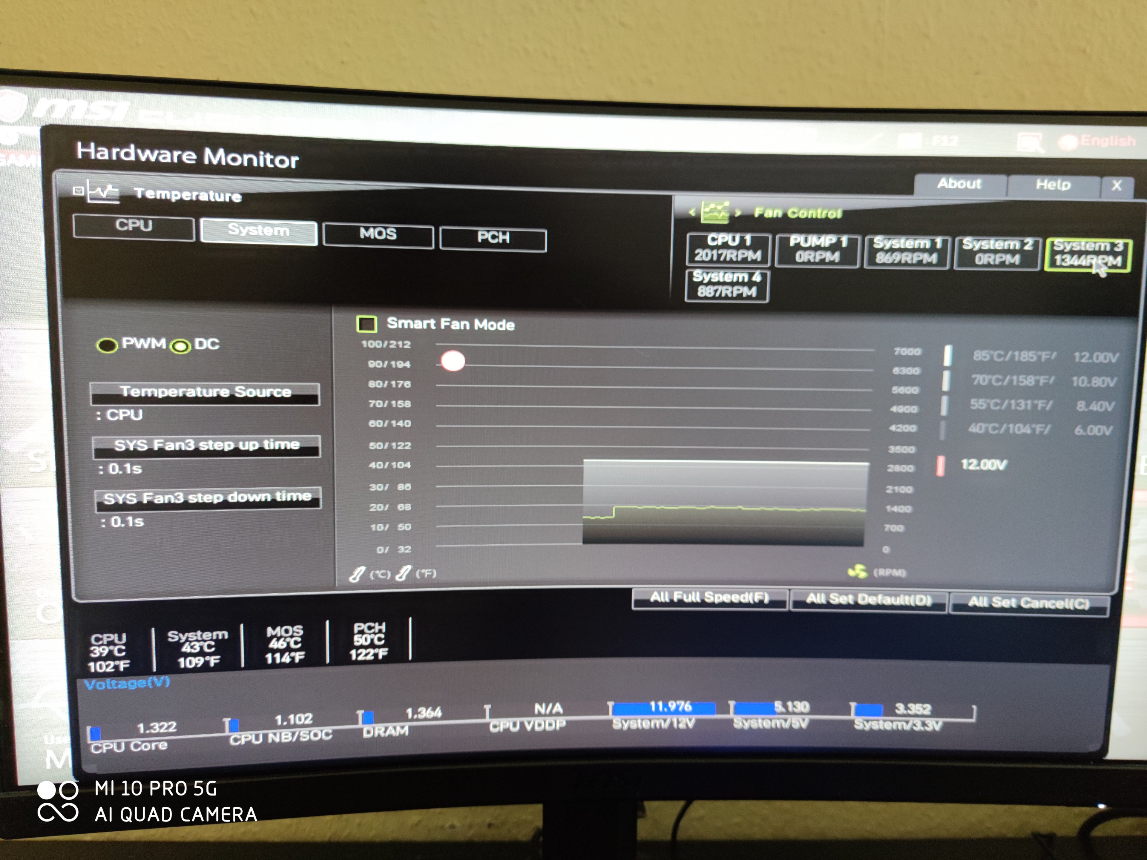 So sieht es im BIOS nun aus wenn ich alles auf 100% laufen lasse, was mir auffällt 2 Lüfter drehen so langsam obwohl die Pure wings 140mm schneller seien sollten