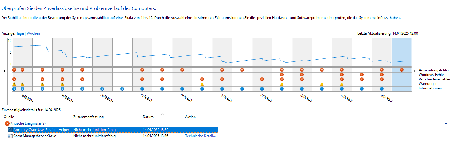 - EXPO deaktiviert (RAM auf Standardtakt) → Abstürze bleiben