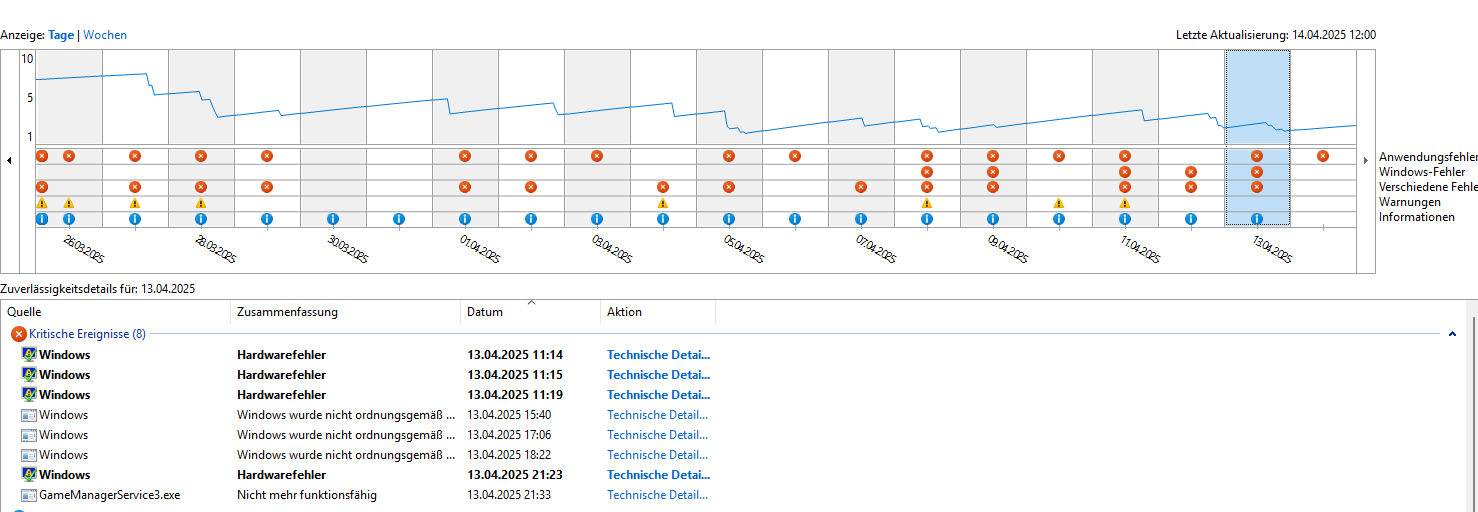ich habe seit einiger Zeit mit unregelmäßigen Abstürzen meines PCs zu kämpfen, vor allem beim Zocken (CS2, Trials Outlast, Dying Light). Der PC geht dabei komplett aus, kein Bluescreen, keine Fehlermeldung – einfach aus, der Zeitraum variiert ebenfalls (manchmal 20 Minuten, manchmal 2 Stunden bis zum crash). Beim Neustart leuchten Lüfter und RGB, aber es kommt kein Bild, bis ich das Netzteil einmal komplett ausschalte und wieder ein. Fehleranzeige sagt "Kernel 41".
