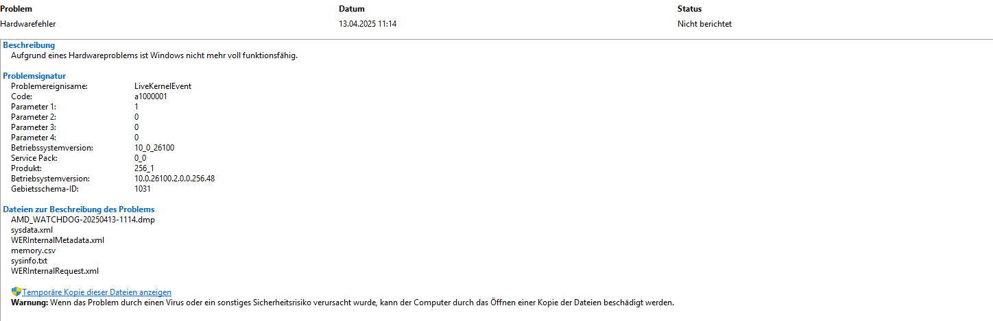 - Netzteil gegen ein neues RM1000e getauscht → Abstürze bleiben