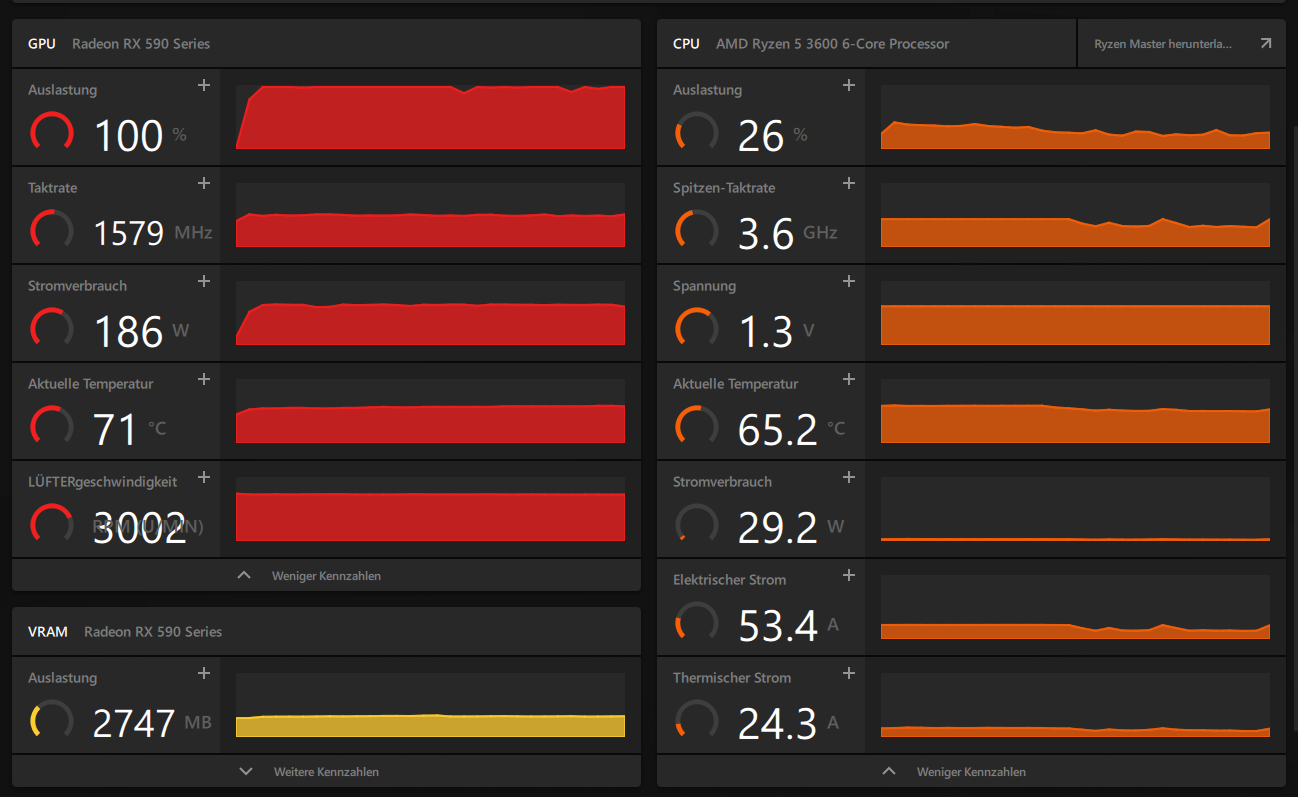 Die GPU Temperatur ist aber im Rahmen..aber muss ziemlicher Krach sein bei deren Lüfterdrehspeed von 3000