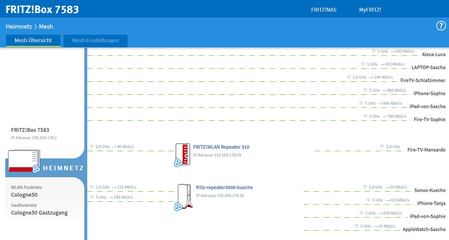 Ich bin immer noch der Meinung, dass Du eigentlich zu viele Repeater im Einsatz hast und man das Gesamtsystem mit einer strukturierten Vorgehensweise (1. Physik, 2. Hardware, 3. Einstellungen) optimieren könnte.