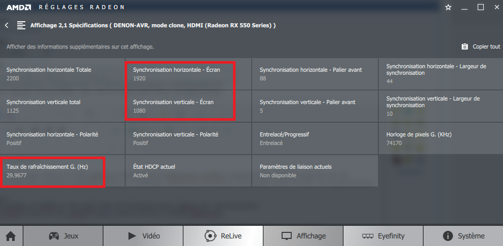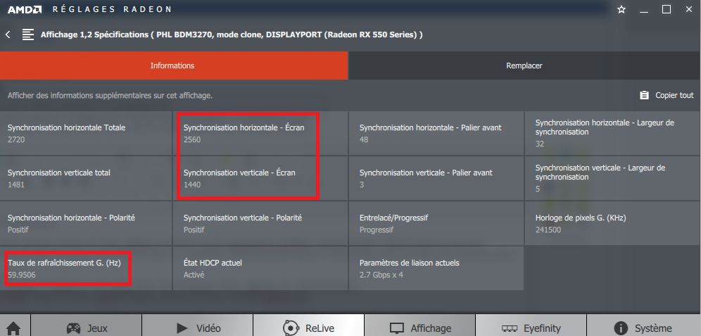 Neuste AMD Treiber sind installiert, in Windows habe ich auf "Anzeige auf beide Monitore klonen" eingestellt.
