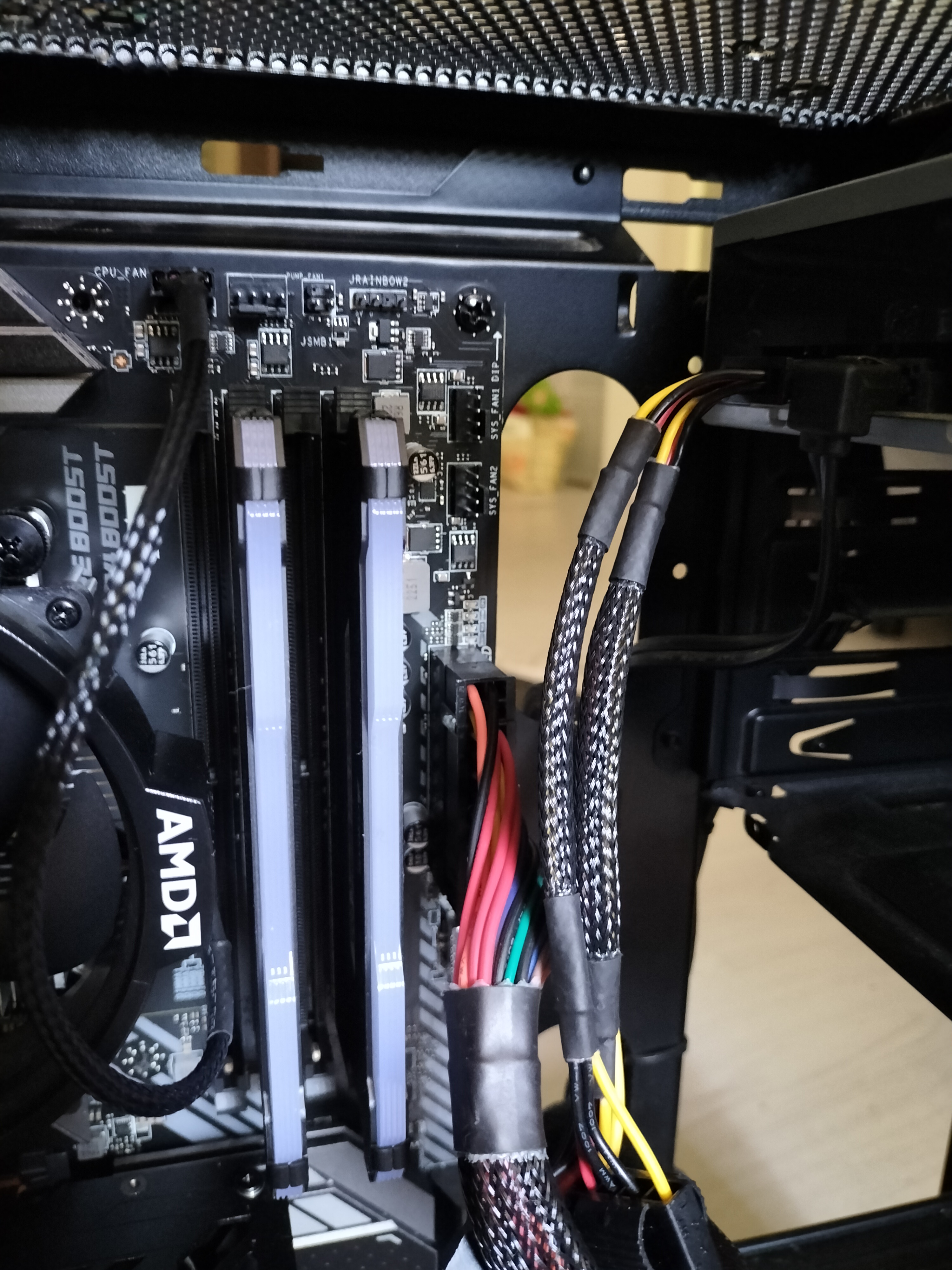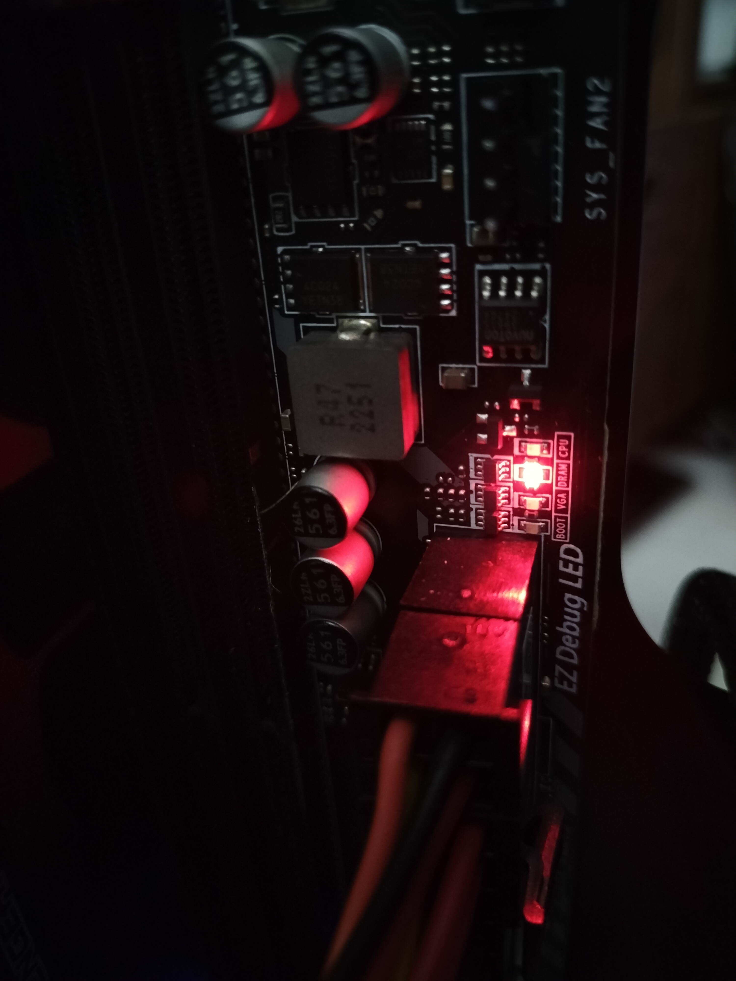 Nach dem nun alles an seinem Platz ist, und ich den Rechner eingeschaltet habe blinkt erstmal 1x die Ez debug LED der CPU danach durchgehend die DRAM Led vom Mainboard. Der Bildschirm bleibt durchgehend schwarz und mir ist aufgefallen das die graka Lüfter auch nicht starten.