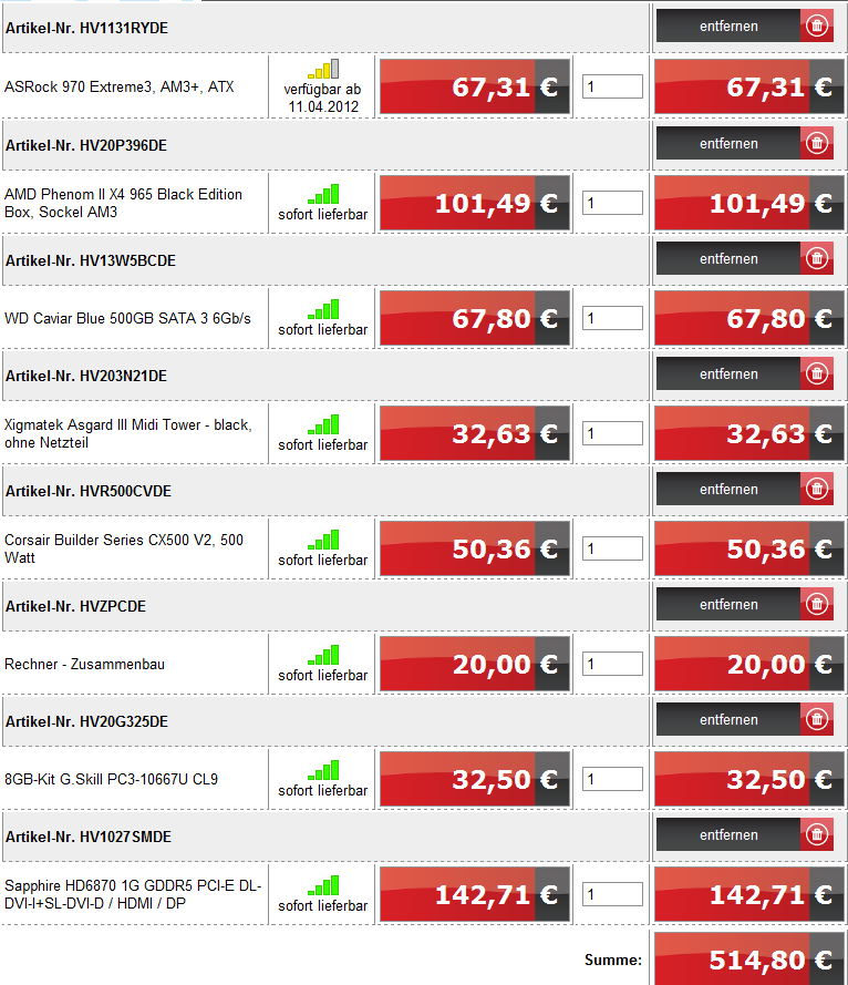 und zwar möchte ich gern meinen PC aufrüsten. Zusammengestellt hatte ich ihn mir 2012 nach der Gaming-PC-FAQ. Im Anhang befindet sich ein Bild mit den Komponenten, hatte mir dann nur noch einen Arctic Cooling Freezer 13 gekauft, weil der PC ziemlich laut war.