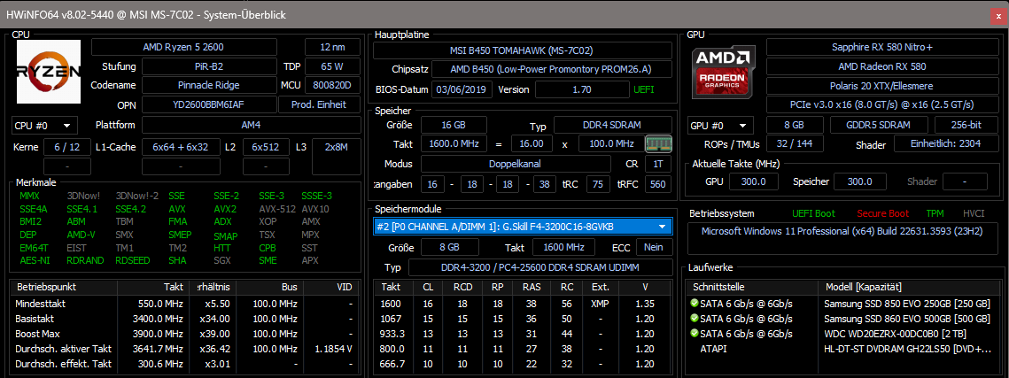 Ryzen 5 2600 auf MSI B450 Tomahawk ( BIOS 1.7)