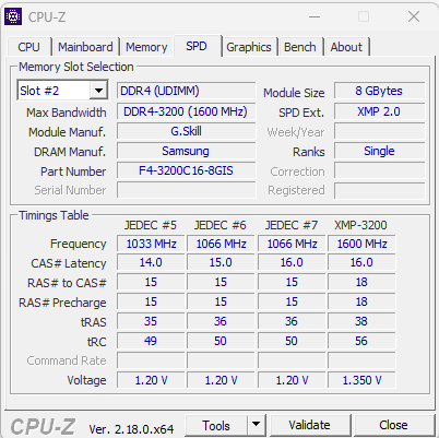 - RAM: 2x 8 GB G.Skill F4-3200 CL16-18-18-38