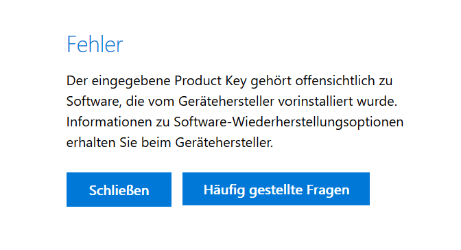 Bringt er bei meinem Laptop z.B. auch, kannst dir auch nen gültigen Key für das selbe Windows (Pro, Home Basic, ...) irgendwo raussuchen und da eingeben, geht genauso und nein, ich schreib hier keinen rein :D