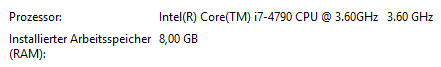 Prozessor: Intel Core i7-4790 CPU 3.60Ghz