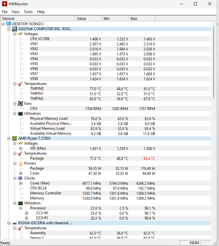 wenn es dir um die temperatur der CPU geht: 95°C ist schon gut warm. WLP kann nach 7 jahren durchaus schlechter geworden sein. welcher CPU-kühler kommt denn zum einsatz und warum dreht der lüfter konstant mit ~2150RPM?