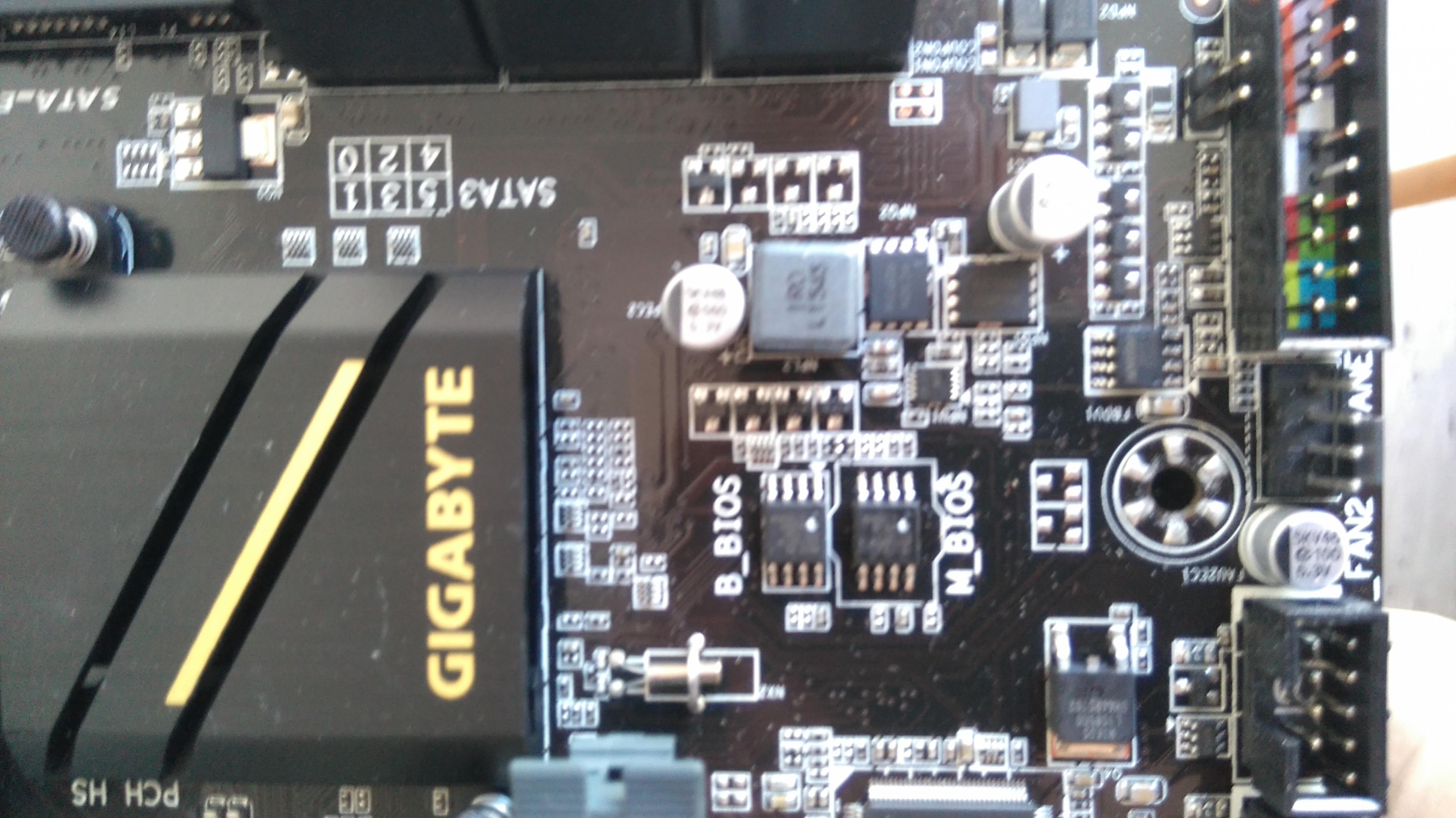 An anderen zwei Stellen, zwei weiße Stellen (neben B_BIOS und M_BIOS)
