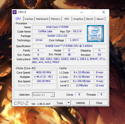 CPU - Intel(R) Core(TM) i7-9700K CPU @ 3.60GHz, 3600 MHz, 8 Kern(e), 8 logische(r) Prozessor(en)