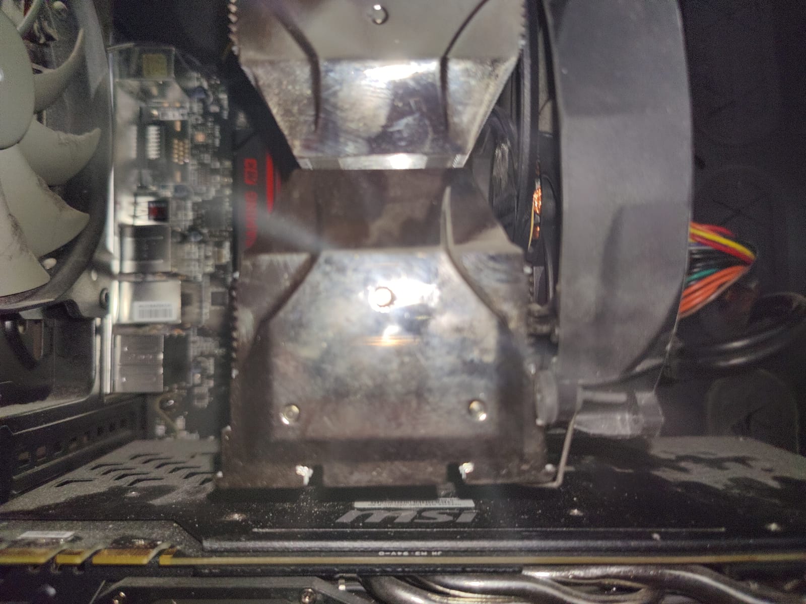Die Graka konnten wir nur vom Strom nehmen, da wohl eine Schraube nicht abzugehen scheint. Wir können sie quasi nicht auf den PCIE Slot rausnehmen.