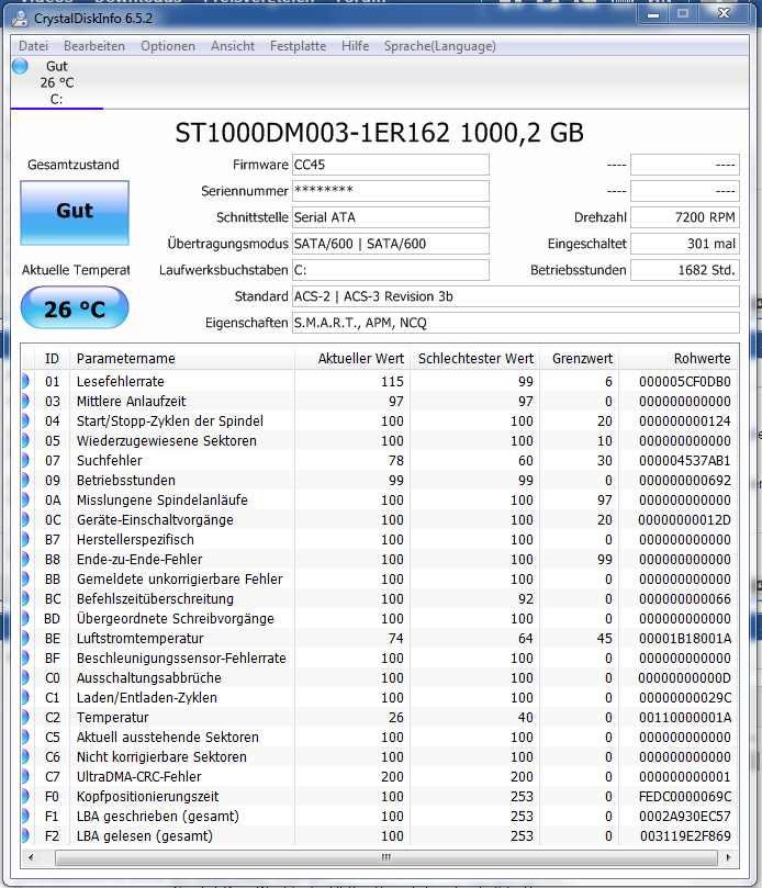 Meine Festplatte ist eine Seagate Desktop HDD 3.5 1TB 7200.