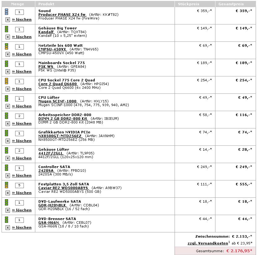 Da ich viel Musik Produziere und meine CPU nichmer die allerhellste ist wollte ich mir nun ein Komplett neues System holen und mein altes Verkaufen.Die kosten sollten hierbei nich 2000 EU übersteigen.