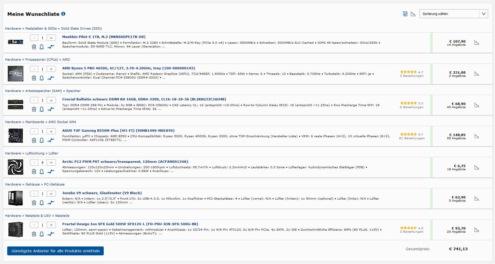5. Hast du noch einen alten PC, dessen Komponenten teilweise weitergenutzt werden könnten? (Bitte mit Links zu den Spezifikationen beim Hersteller oder Preisvergleich!)
