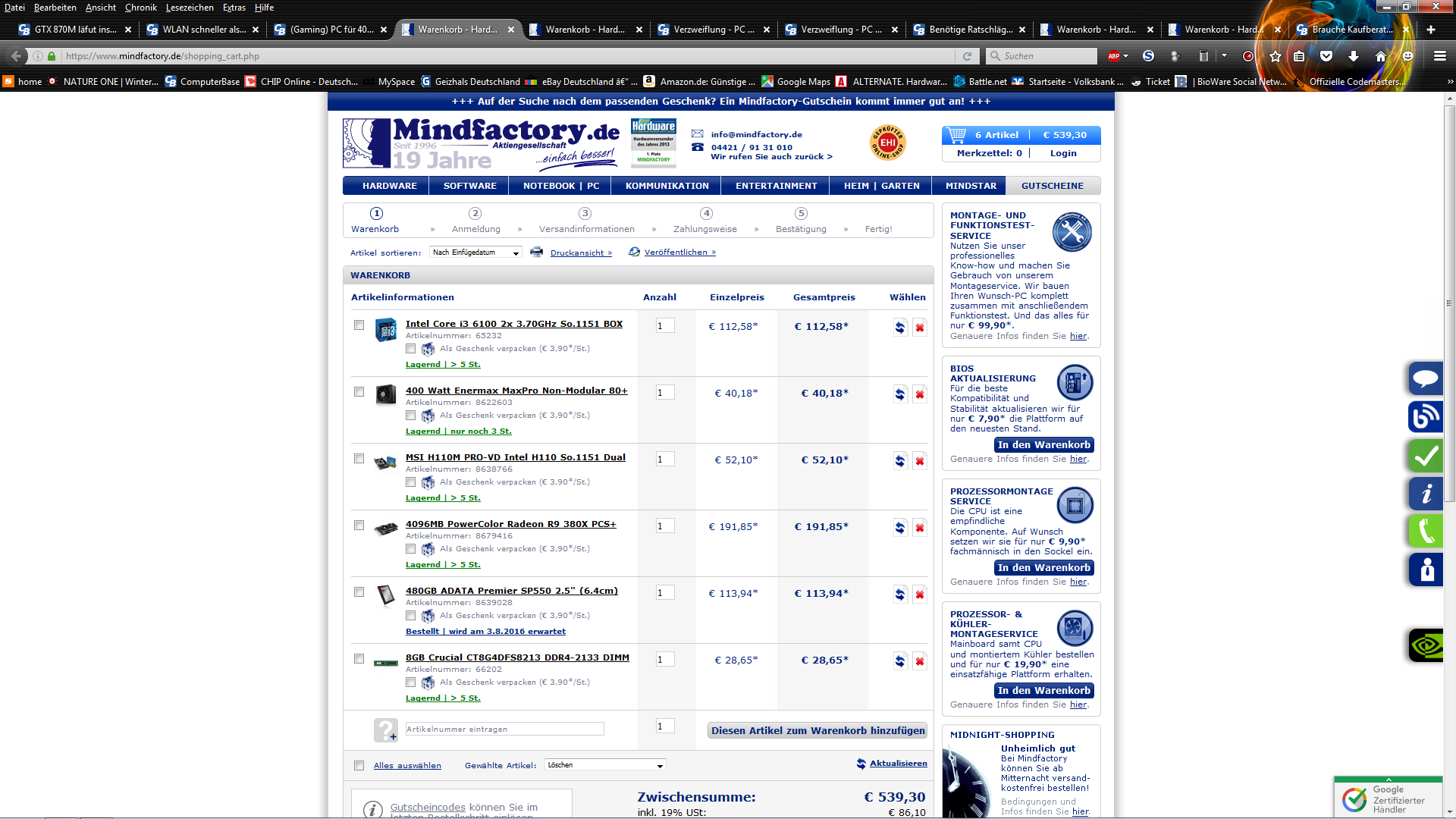 Ich hab die empfohlenen Zusammenstellungen durchgeschaut und hätte momentan folgende Komponenten als Kern ausgewählt: