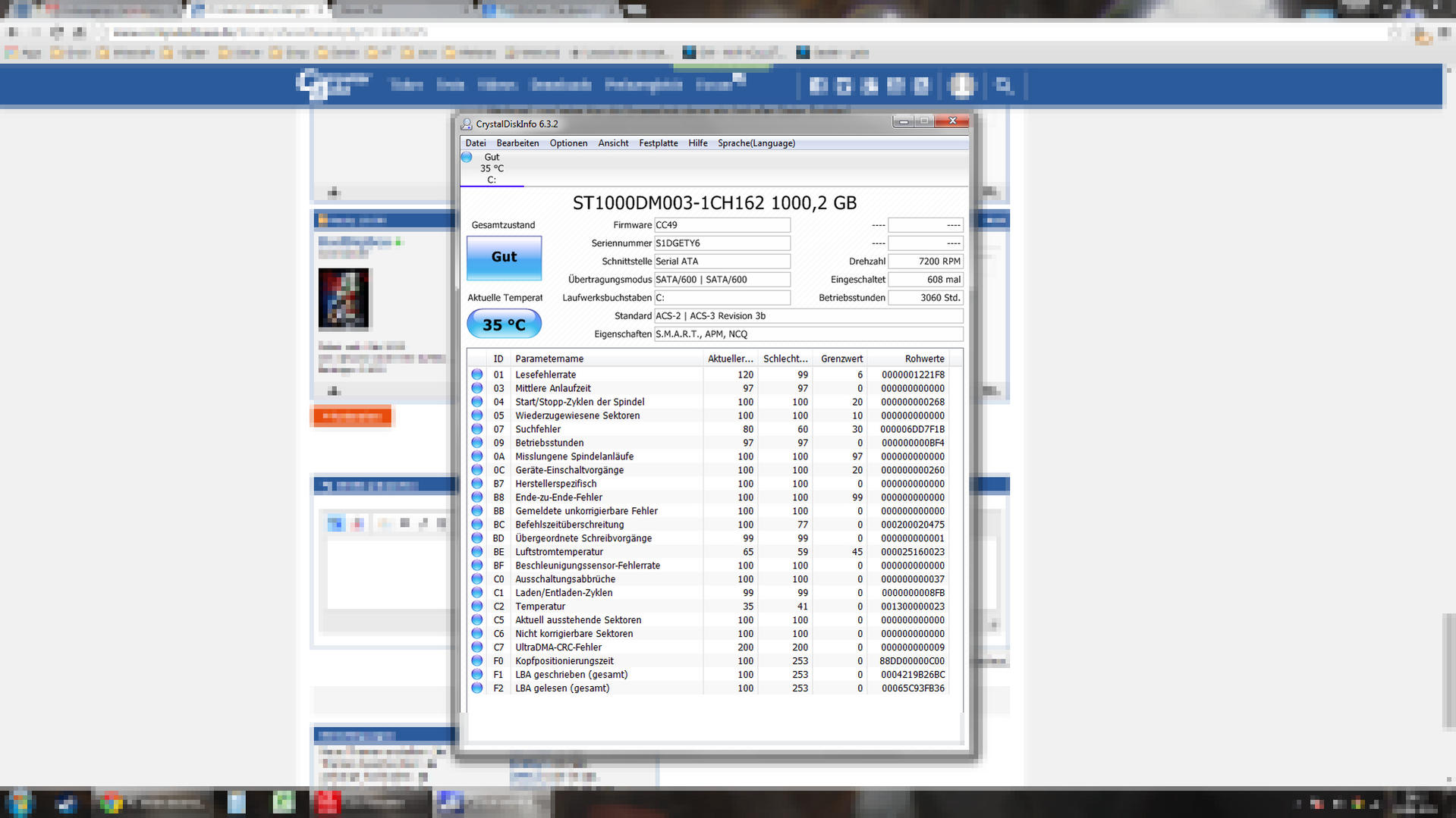 Zumindest stimmt oder stimmte da mal was mit dem Sata Kabel nicht. Mal auf richtigen Sitz prüfen oder gegen ein anderes tauschen und beobachten ob der Rohwert unter C7 weiter ansteigt.
