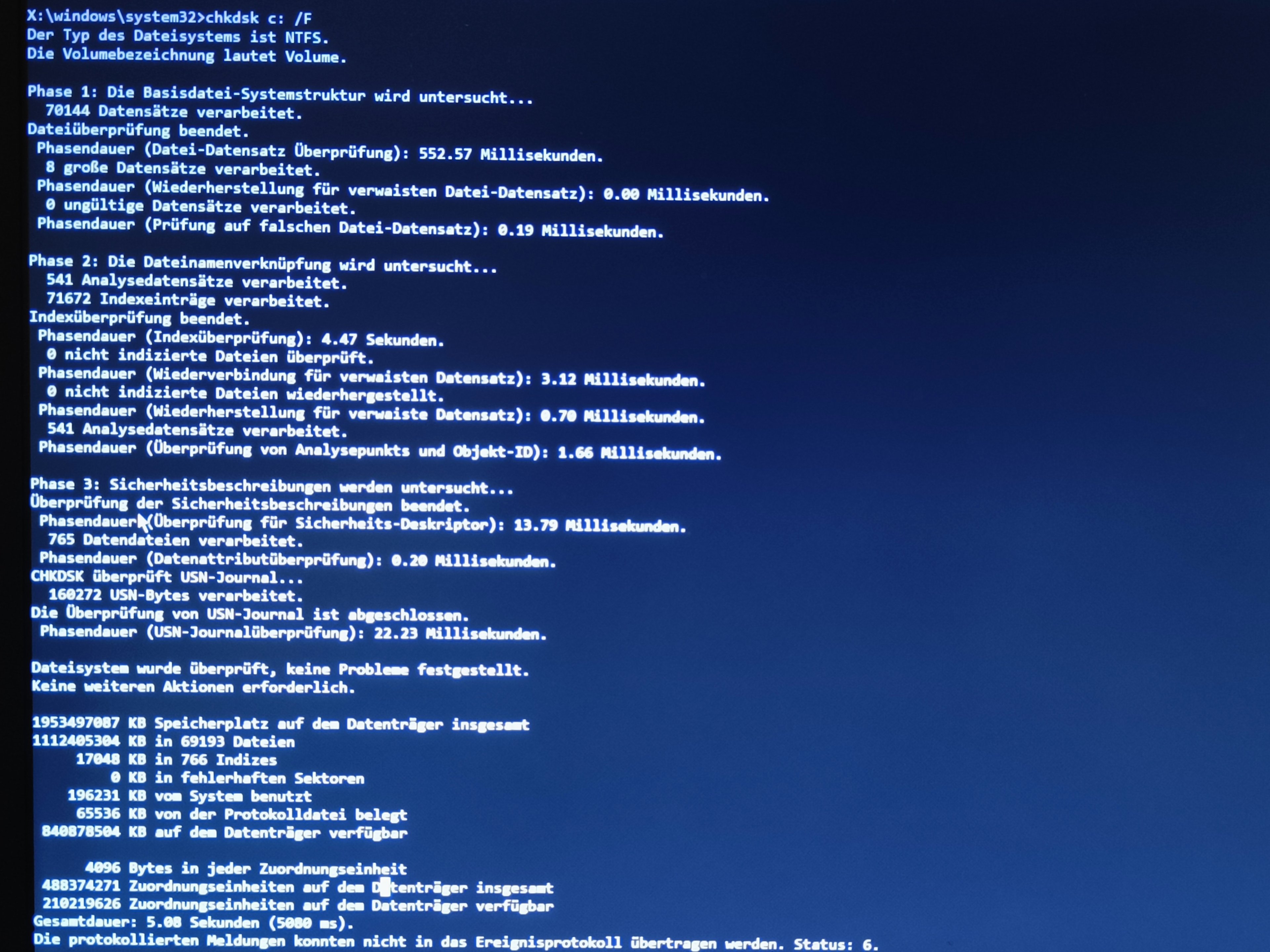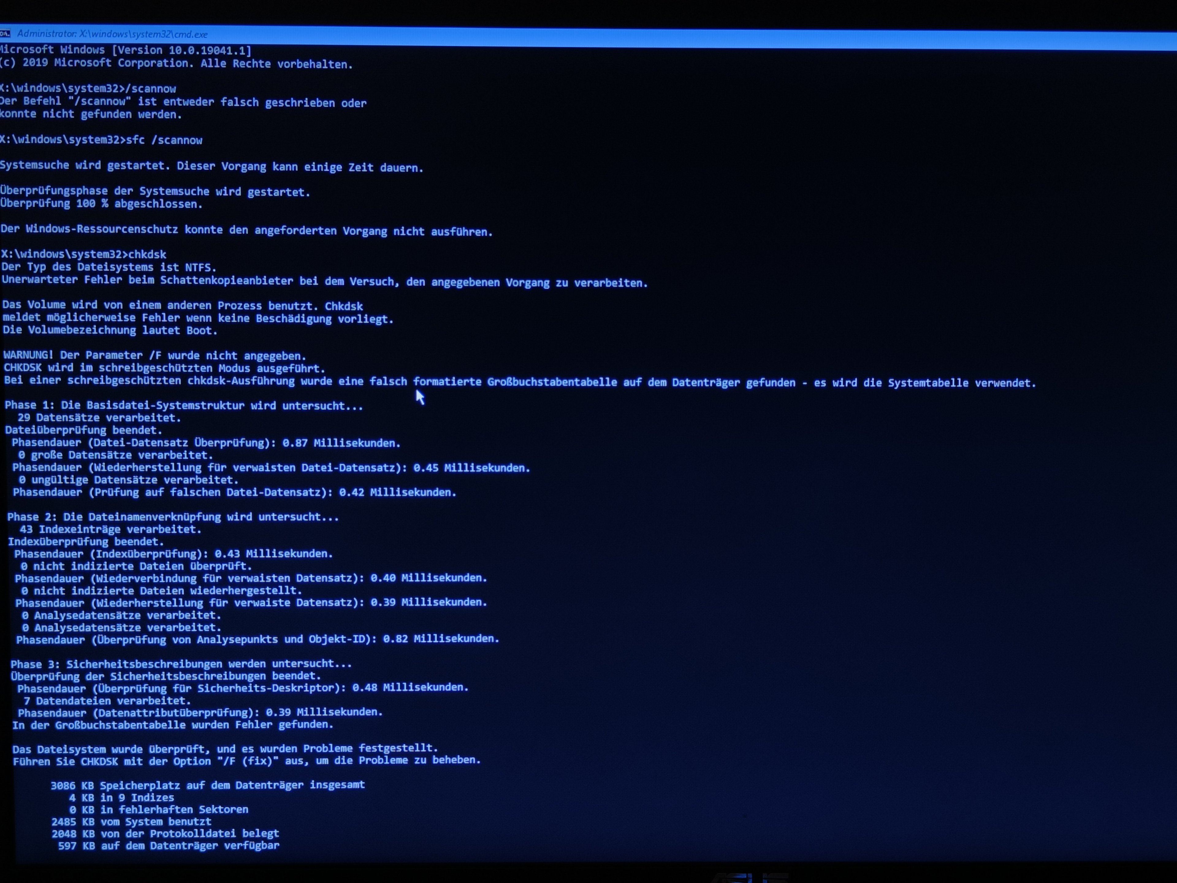 Hab schon mithilfe von paar leuten hier mehrere sachen versucht; bios modus (CSM deaktiviert bzw uefi modus aktiviert), bios neu installiert, chkdsk /f, chkdsk/r...